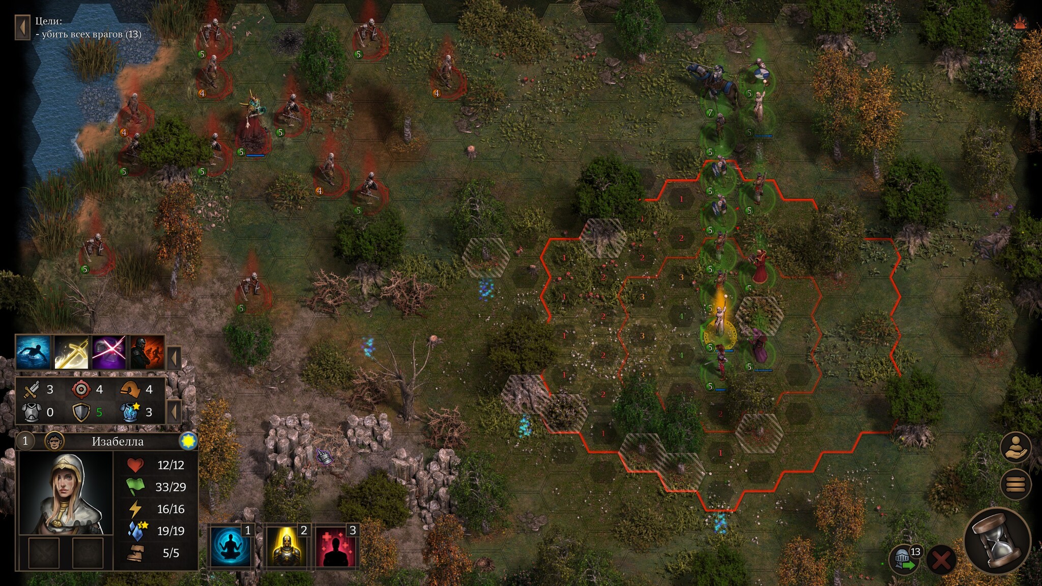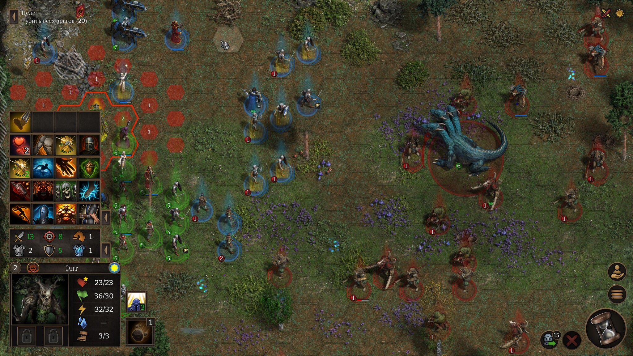 Так же в Veterum мне понравилась система магии. Параллельно с привычными молниями и огненными шарами здесь есть сильные, но ситуативные заклинания. К примеру, друид может вызвать на поля боя энта – медленного, но живучего танка, которого не жалко отправить в самую гущу битвы (призванные существа исчезают после сражения). Однако для успешного колдовства необходимо наличие поблизости дерева, из которого и «вылупится» грозный энт. Если битва проходит в пустыне или в глубокой пещере, взяться энту в принципе неоткуда. А какое-то время мой герой-командир разгуливал в кармане с купленным за немалые деньги волшебным жезлом, способным призывать из болота гигантских ядовитых жаб. Прикольное и эффективное заклинание, но, как уже догадались самые сообразительные, чтобы применить жезл требуется найти на поле боя водоём.