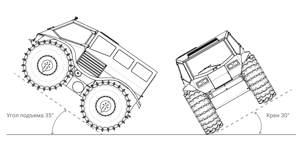 Гарантированный преодолеваемый подъем - 35 градусов