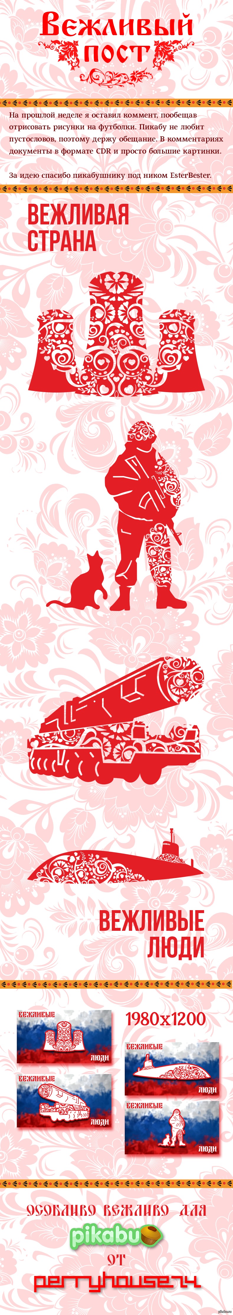 120 perrymason74 Вежливая страна. Вежливые люди. 11 лет назад навеяно постом http://pikabu.ru/story/_2823457 , за идею спасибо @EsterBester , в комментах ссылки на CDR и обои Вежливость Россия Хохлома Длиннопост