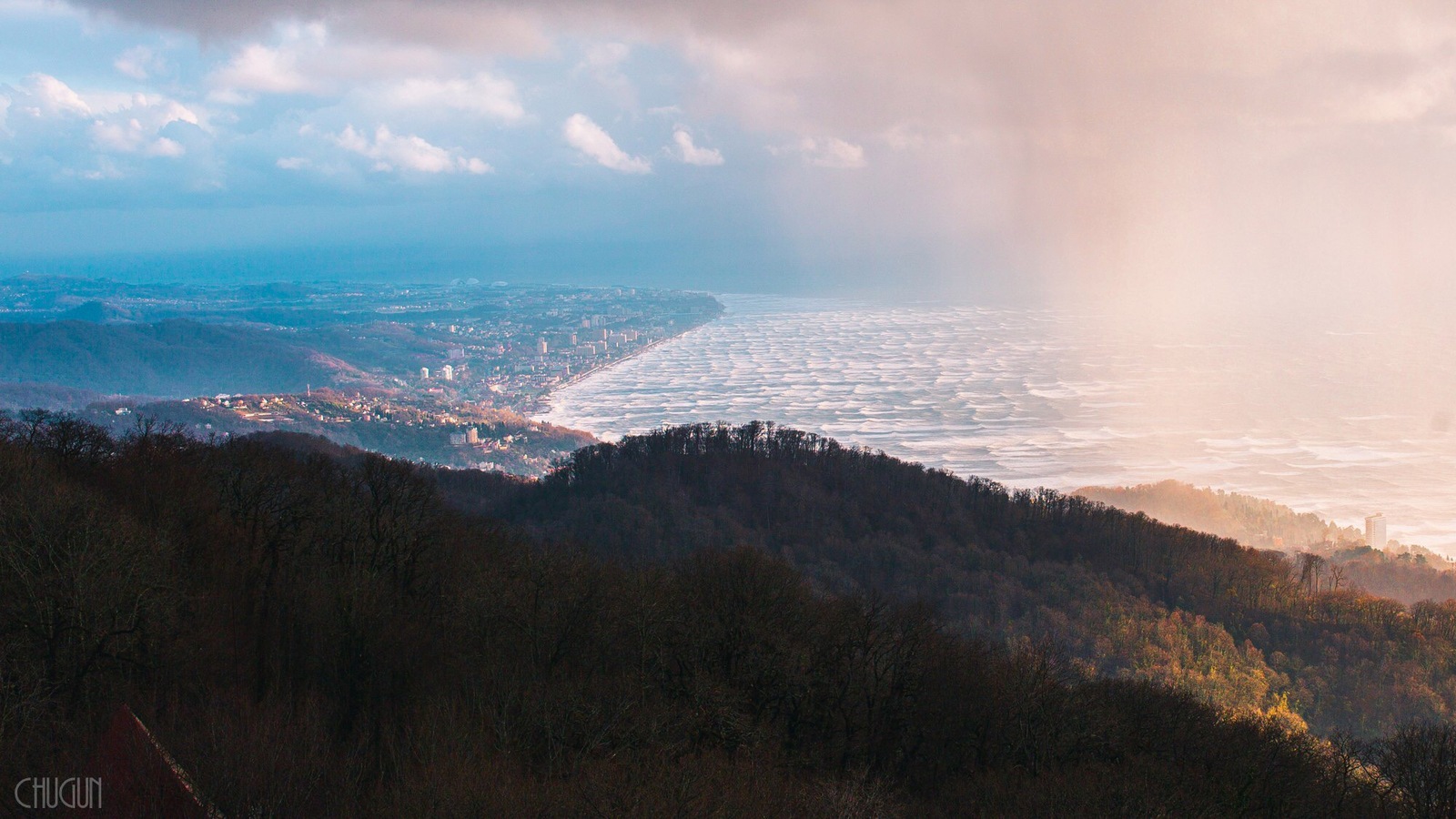 102 golovoeb Вид на Адлер с башни Ахун во время шторма . 8 лет назад Фото:Роман Чугунов. Шторм Адлер Погода Россия
