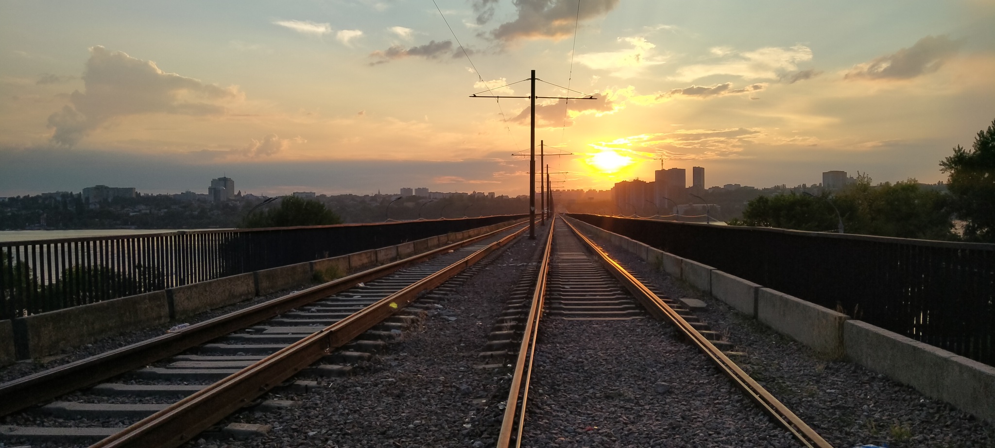 33 DELETED Воронеж Вид с северного моста. Левый берег 3 года назад [моё] Мост Железная дорога Воронеж Длиннопост Закат Северный мост Рельсы Небо Трамвайные пути Фотография Ещё 0