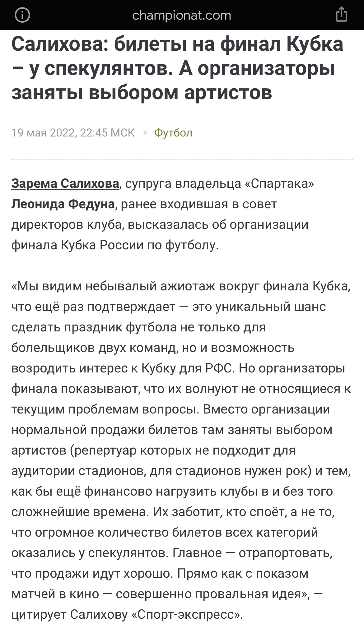 При всем моем недолюбливании Спартака. 𝖯𝖱-менеджеры Спартака, в этой ситуации, разгромили всех своих оппонентов. Это настолько мило, что даже я, закоренелый циник, пустил слезу. Для ЛЛ- пока Максим лежала в коме с ковидом, фаны Спартака пели ее песню каждый матч, желали здоровья. Она реально чуть не умерла. Сейчас, она , после победы вышла и хором с ними спела.