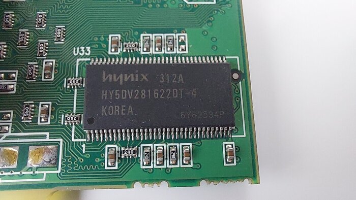 Оперативная память тут фирмы Hynix типа DDR, набранная из 8 микросхем по 16 мегабайт. Таким образом общий объем памяти 128 мегабайт, а ширина шины 128 Бит. Память работает на частоте 400 МГц против 550МГц у Radeon 8500. Тут есть нюанс что производительность памяти может отличаться от вендора к вендору.