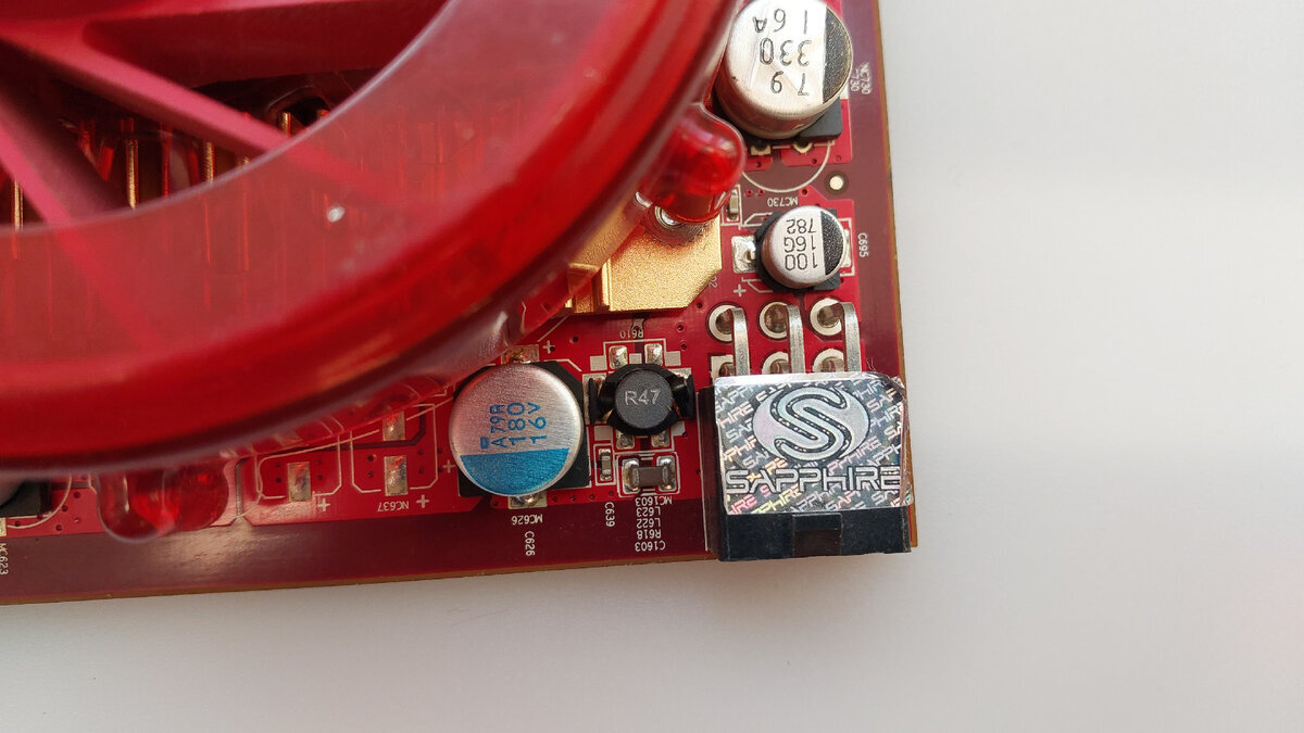В свете солнечной погоды видеокарта выглядит сочно красной.
