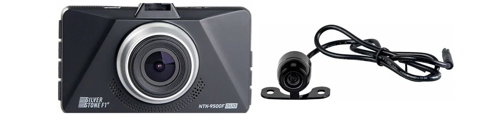 Достаточно часто выбирают недорогой видеорегистратор в автомобиль по принципу «чтобы был». В этом случае могу порекомендовать бюджетную модель SilverStone F1 NTK-9500F DUO. Цена за модель с FullHD записью и с дополнительной задней камерой символическая. Основная камера, установленная на лобовом стекле, охватывает обзор всей дороги впереди. Вторая камера устанавливается снаружи автомобиля для фиксации обстановки позади транспортного средства.