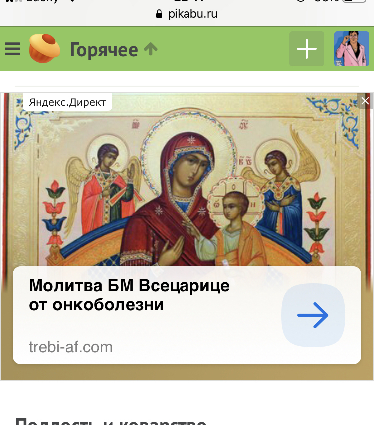 1 rravil 6 лет назад Видимо, алгоритмы Яндекс.Директа и контент-трекинга Пикабу не интегрированы Я, человек подписанный на тэги по ядерной физике, математике и другой научной тематике. И тут мне предлагается вот это. Может стоит немного обучающихся алгоритмов применить для таргетинга рекламы?:) [моё] Реклама Пикабу Религия Научный подход Наука и религия Яндекс Директ