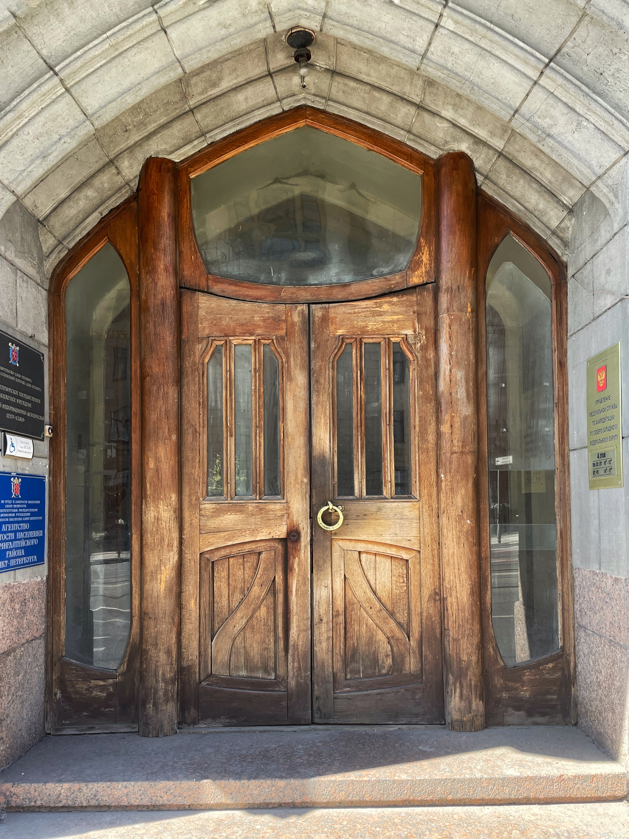 1. Декор. Начинаем с простого. Вы же присмотрелись к фотографиям дверей? Увидели асимметричные плавные растительные орнаменты? А сова? Всё это характерная символика модерна.
