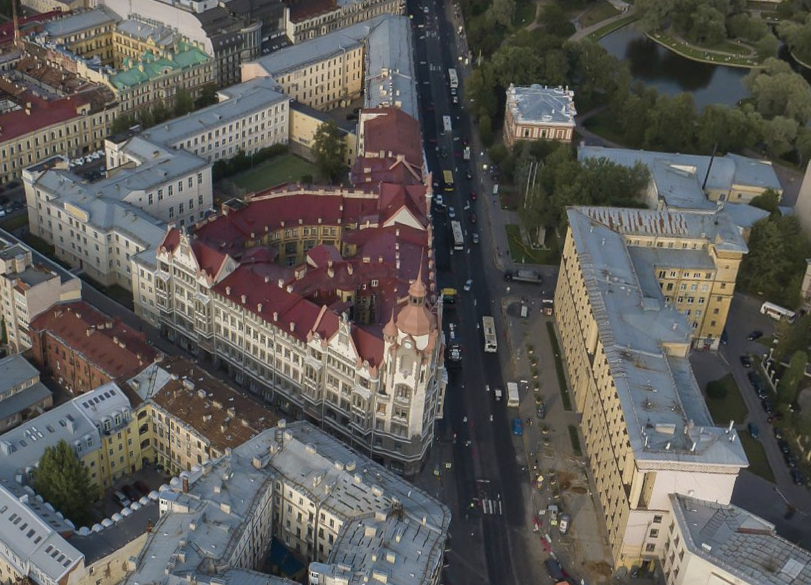 4. Отсутствие симметрии и строгости. Это для модерна определяющее. Да, на первый взгляд Дом городских учреждений может показаться симметричным. Но если вглядеться в план дома, становится возможным понять, что это иллюзия. Объём здания это не система осей, а пластическая масса - мягкая, гибкая, в ней чувствуется лёгкость движения. И архитектор Лишневский здесь словно заигрывает с симметрией, как бы намеренно водит нас за нос. И это тоже важно и ведёт нас к следующему пункту.