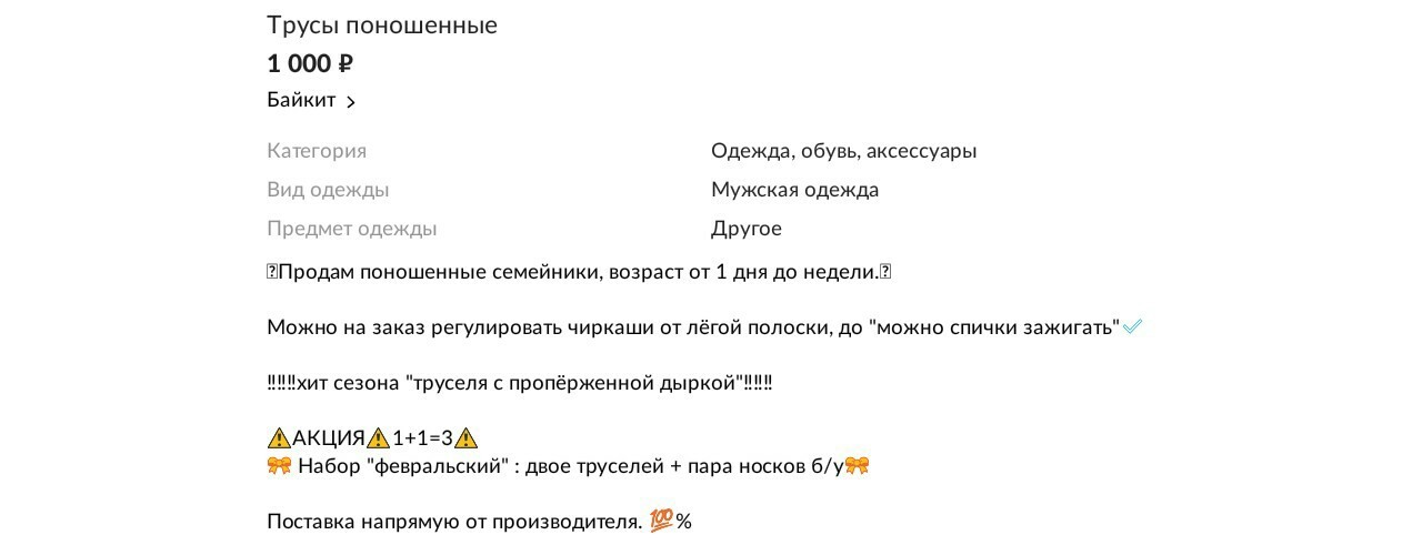 Вроде и понятно что просто глупая шутка, но осадок остался от понимания того, что фетишистов хватает и есть настоящие покупатели/продавцы