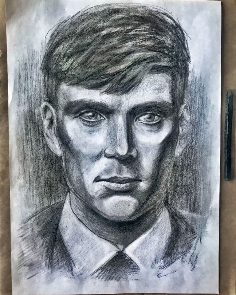 Виноградный уголь. Рисовать им не просто, но интересно)