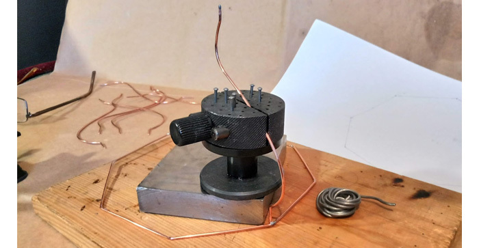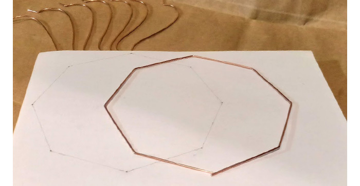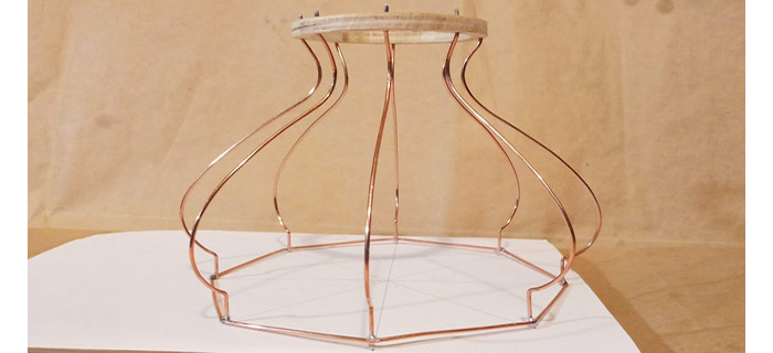 Затем делаем восьмиугольное кольцо для нижнего основания каркаса. Спаиваем место стыка. Медь очень легко паяется оловом, и это главная причина, почему я выбрал именно медную проволоку для изготовления каркаса.
