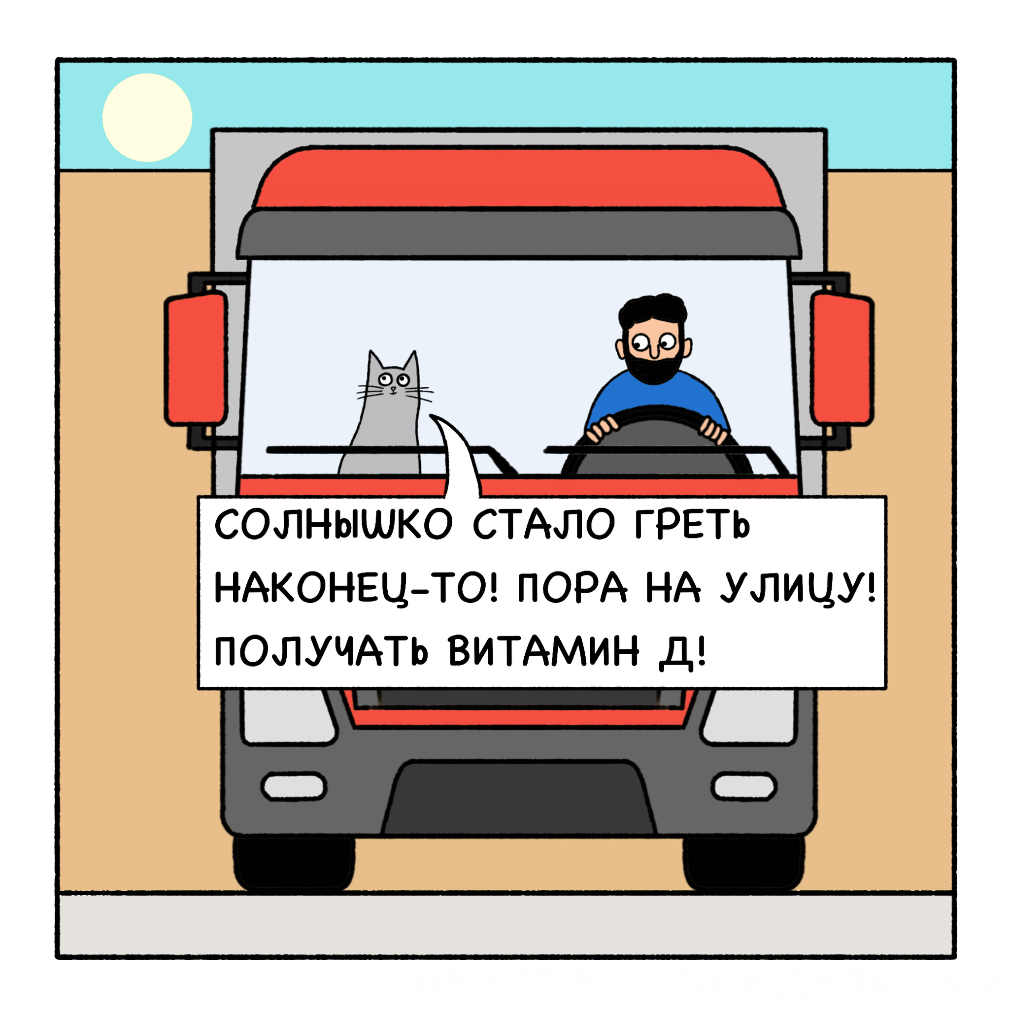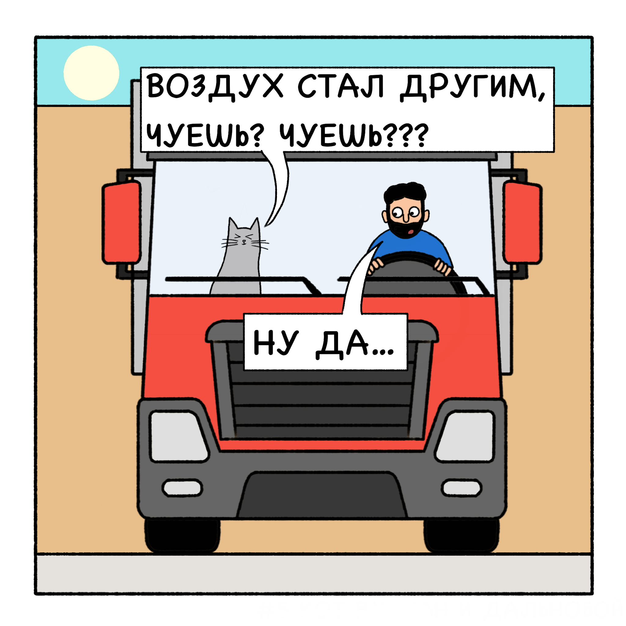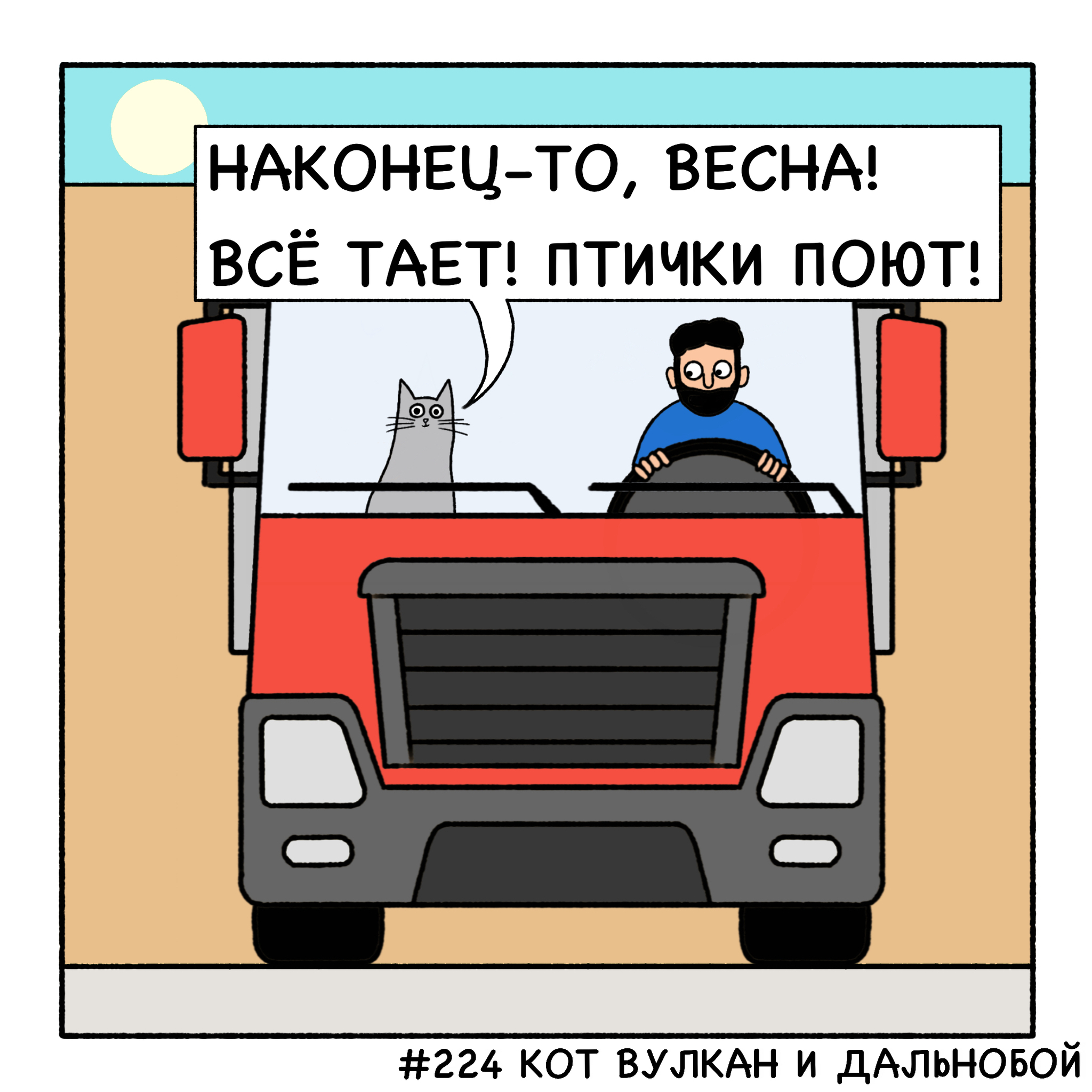 Кот Вулкан и дальнобой едут далеко-далеко. В дороге дальнобоя развлекает очень эрудированный и умный кот Вулкан.