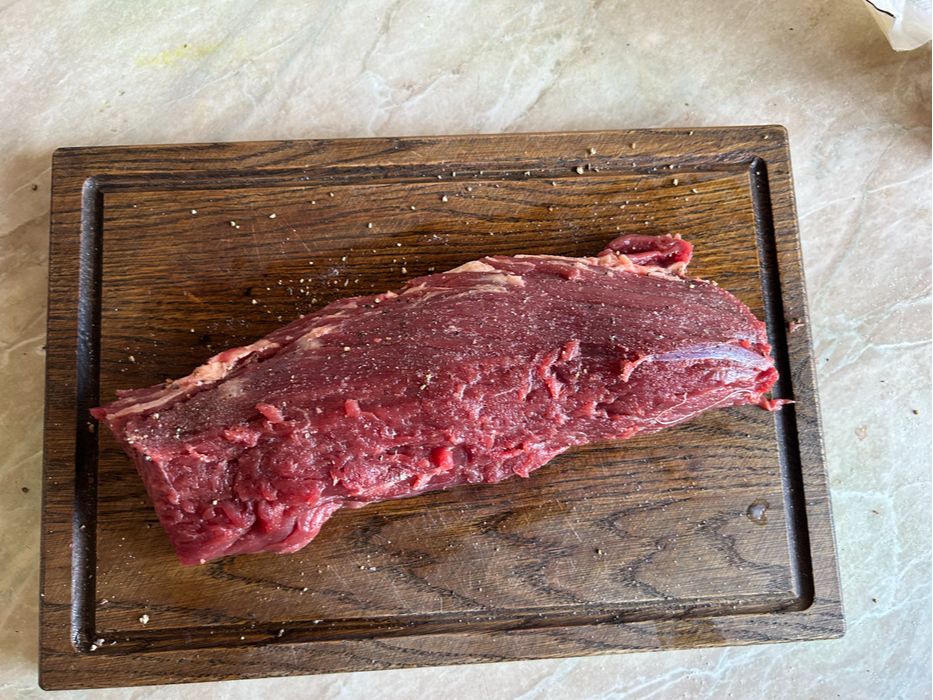 На фото ещё вся вырезка целиком, в дальнейшем вырезал самый толстый кусман на этот рецепт, ждите тар-тар)))
