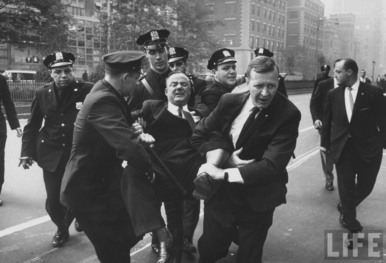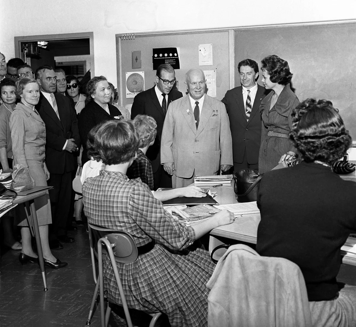 Эта фотография получилась случайно -- фотограф агентства "Magnum" Берт Глинн немного опоздал и оказался за спиной Хрущева.