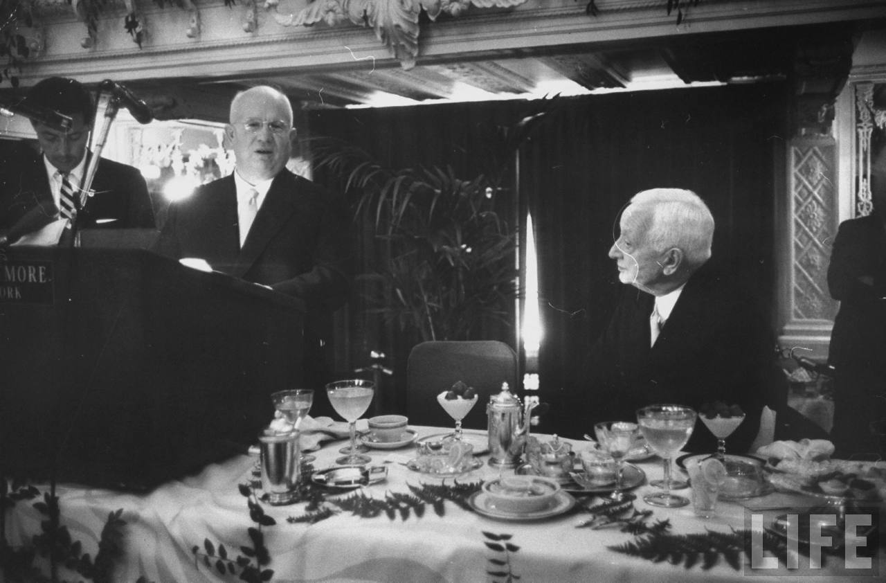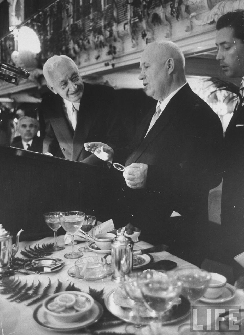 Канадский и американский предприниматель, филантроп, общественный деятель Сайрус Итон и Никита Хрущев, на званом ужине в честь советской делегации.
