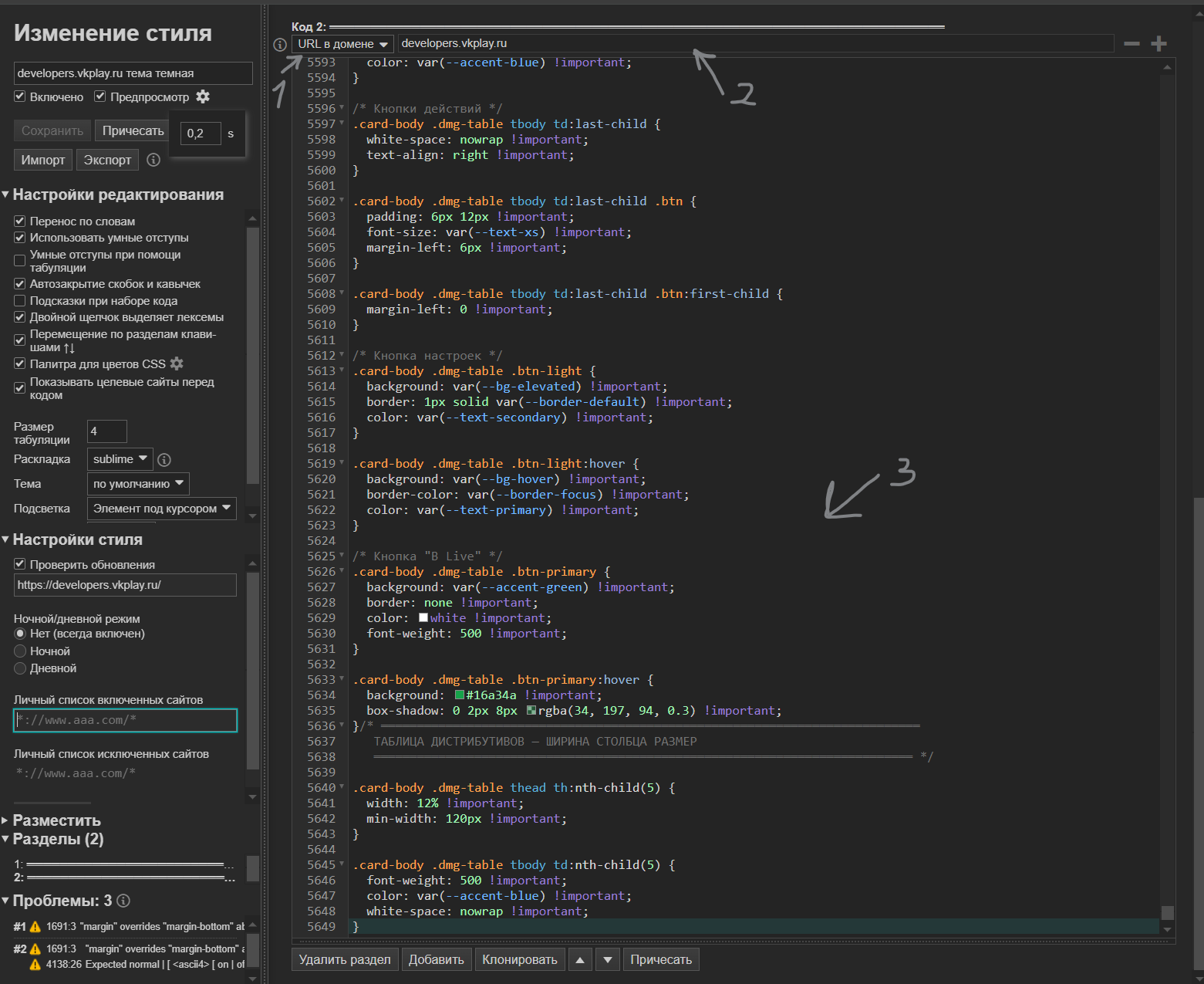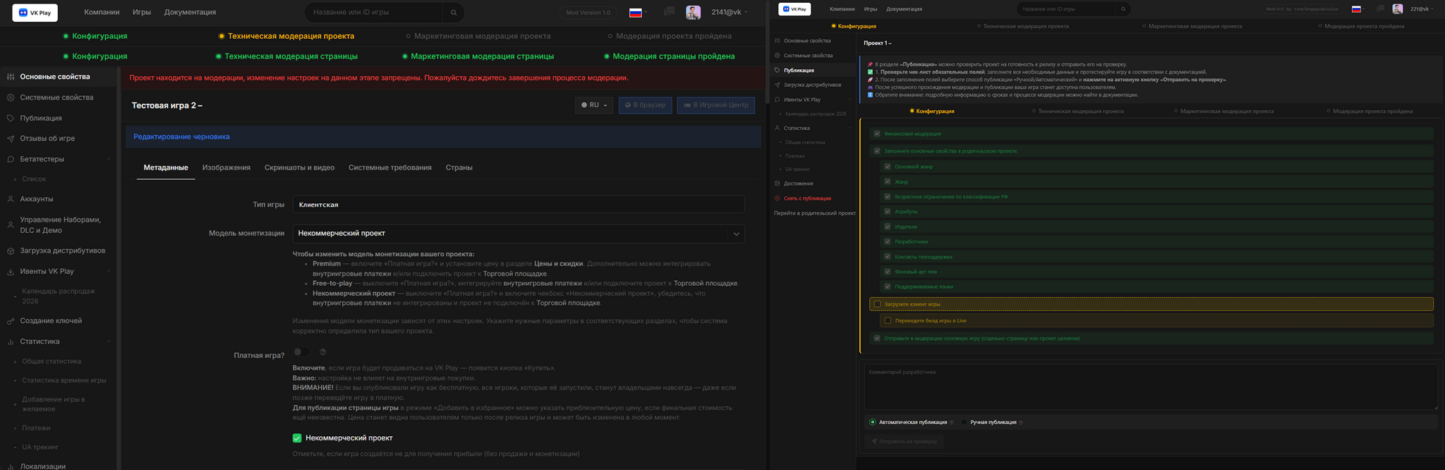 Тёмная тема для кабинета разработчиков VK Play.