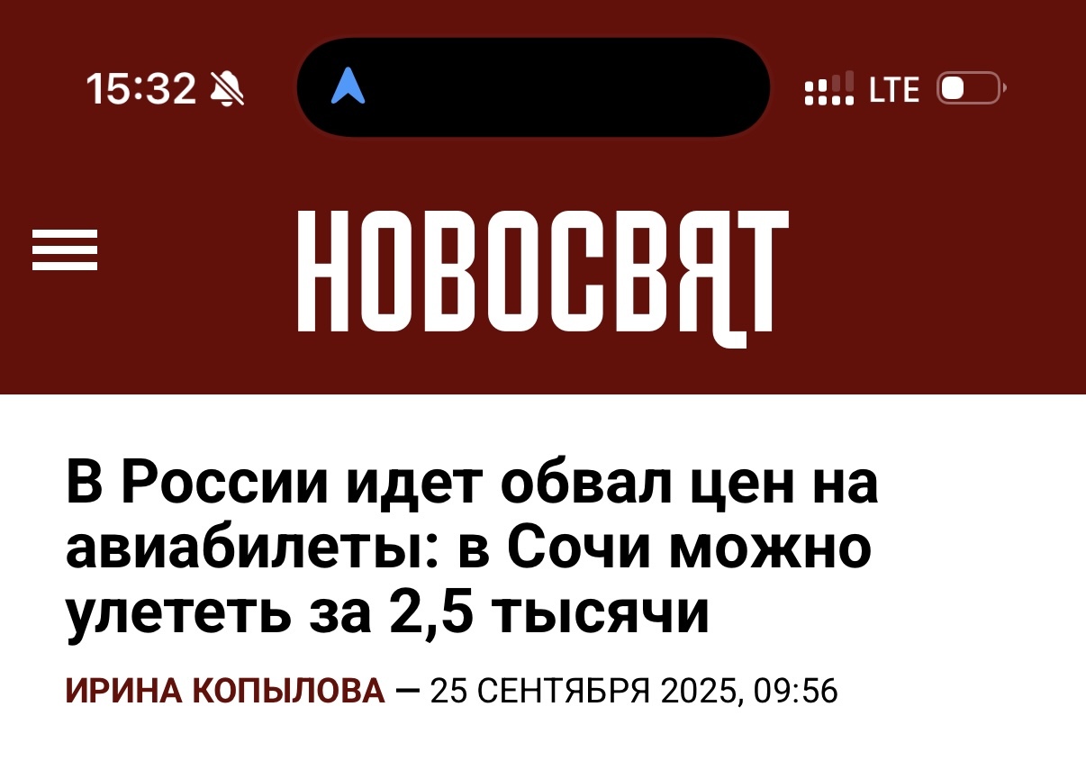 Увидел новость: билеты в Сочи стали дешевле 3 тыс