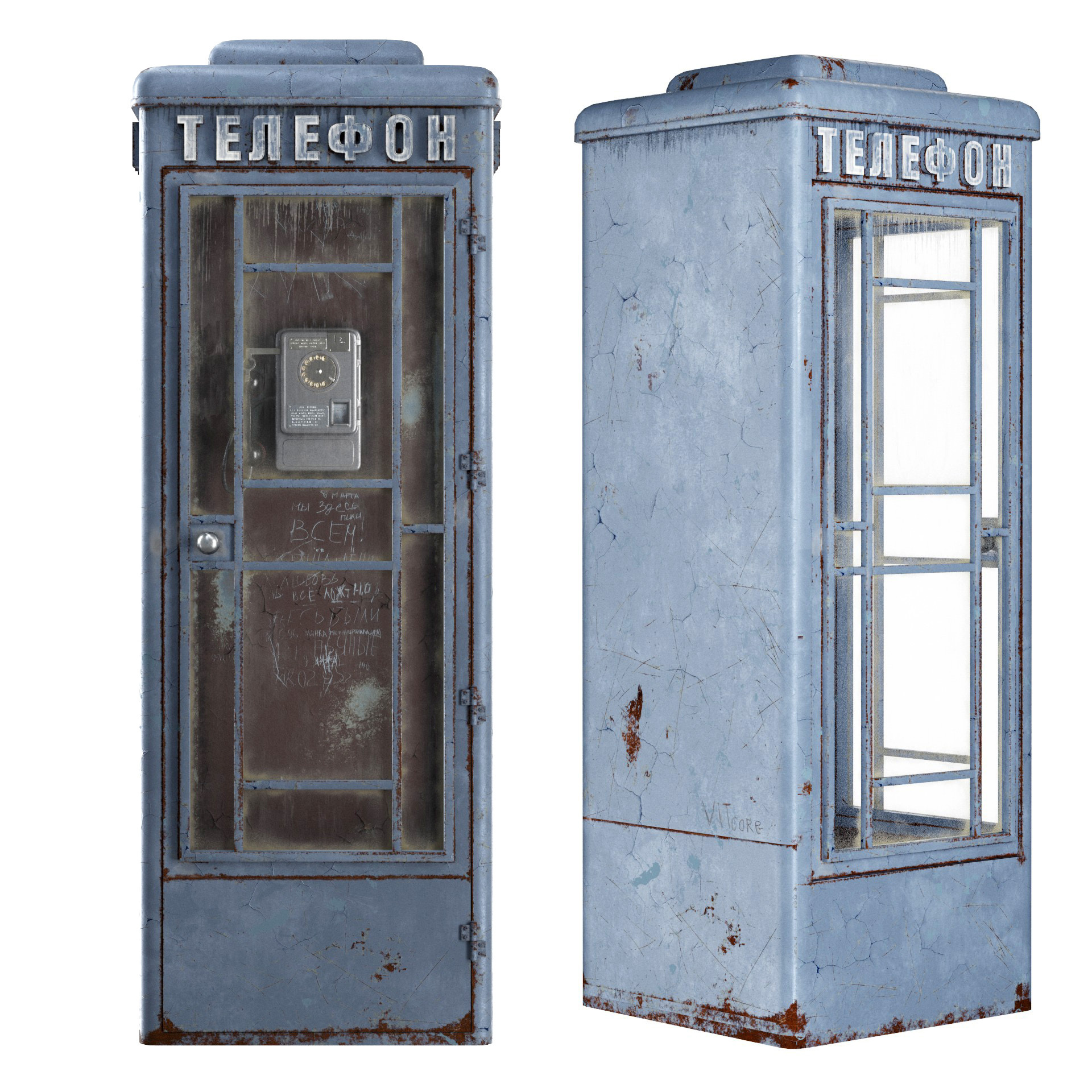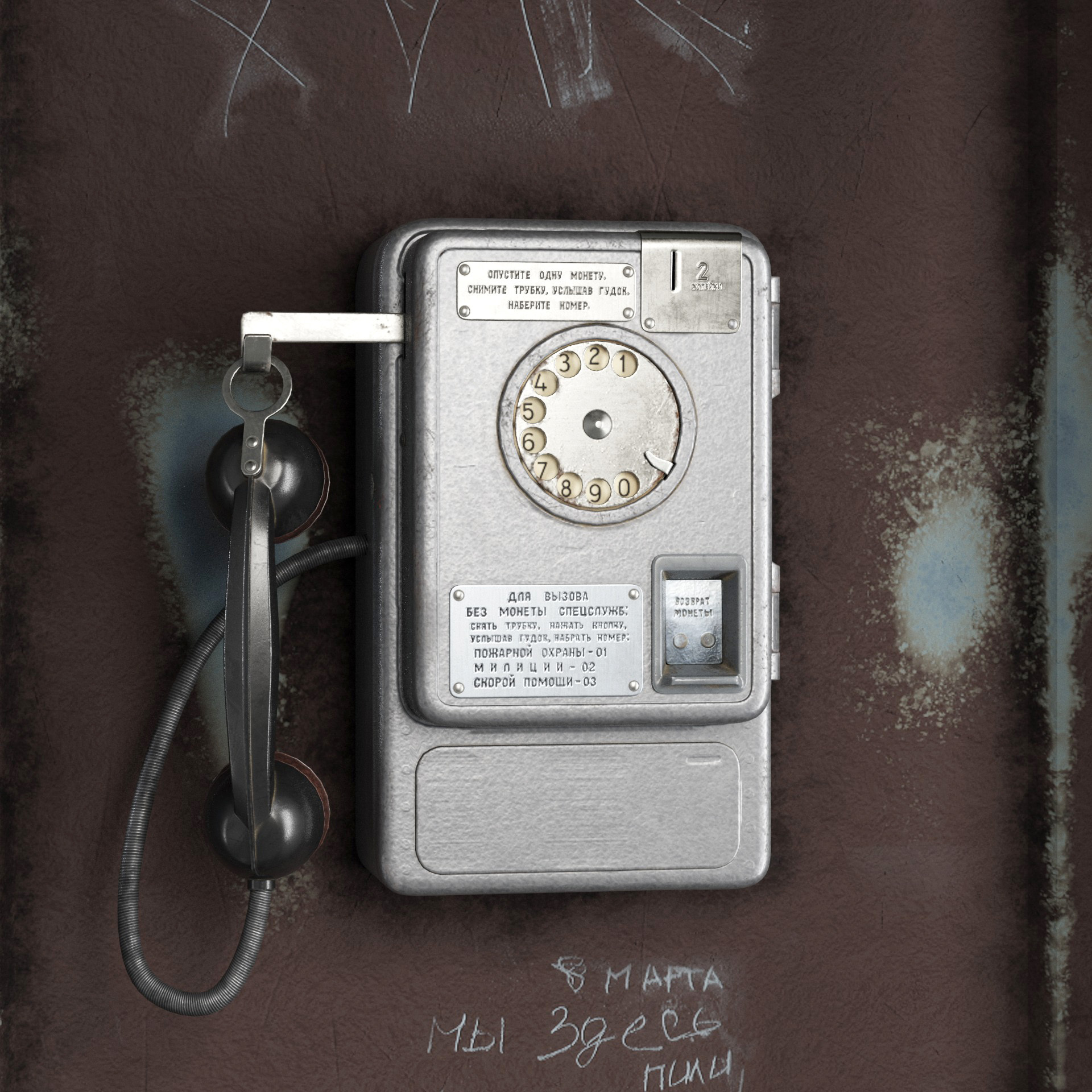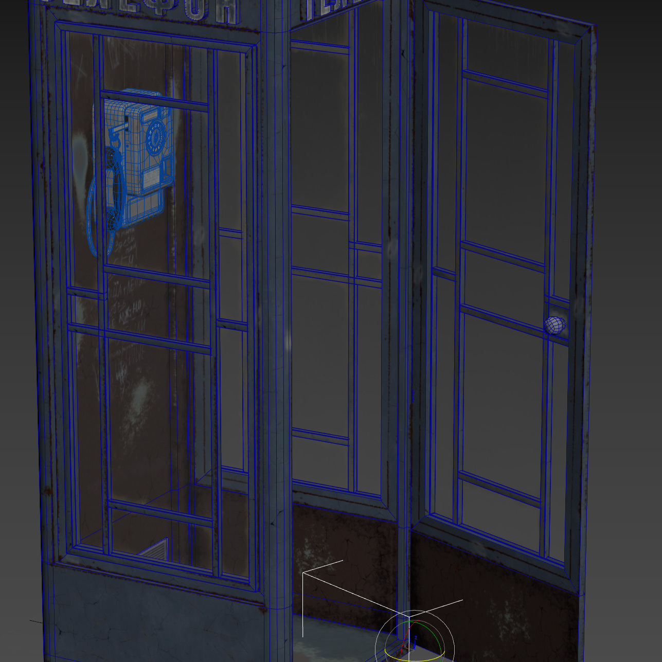 Вот такая будка для таксофона получилась у меня. На будке использовал overlapped-UV, чтобы по максимуму сохранить детали в одной 4К текстуре. На аппарате non-overlapped ужатая в 1К, но даже текст еще считывается, fullres конечно в 4К (в предыдущем посте)