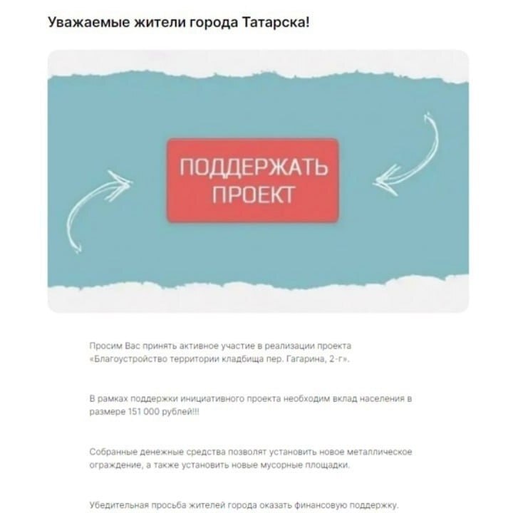 «Собранные денежные средства позволят установить новое металлическое ограждение, а также установить новые мусорные площадки», — указано в тексте.