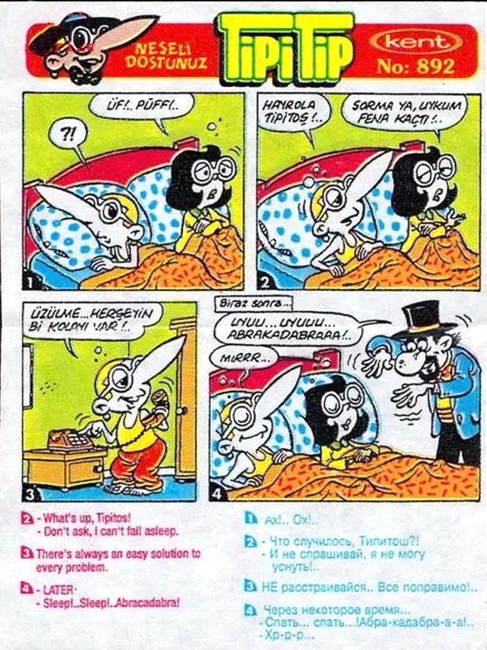 Текст в комиксах был турецкий, и, хотя в большинстве ситуаций юмор был понятен на интуитивном уровне, попадались вкладыши, в которых, не зная языка, шутка терялась и возникали споры о том, что же вообще произошло с ТипиТипом?