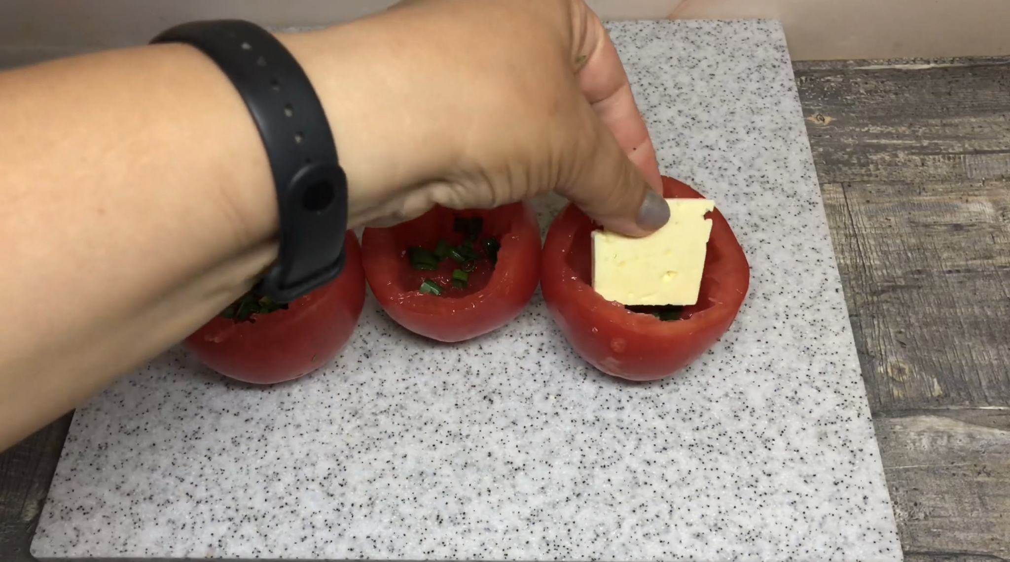 3) Нарежем сыр и поместим его следующим слоем в помидор