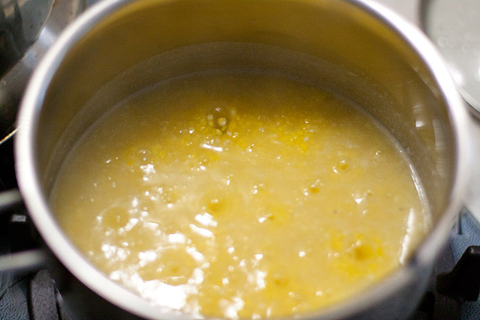 на этой стадии, важно добиться получения, кремообразной пасты, за счёт выделения кукурузного крахмала из дроблёных зёрен. Мешаем почти не переставая, ибо пригорит.
