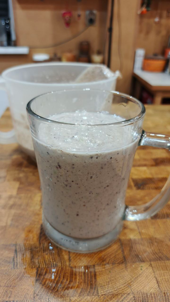 Готовим?) Да так-то всё настолько просто что и писать стрёмно… Все продукты нам нужно взбить блендером до однородной структуры и в общем-то всё))) Получается густой, сытный, ароматный напиток. Чрезвычайно питательный и полезный!
