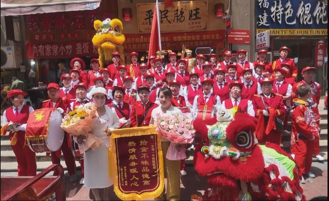 1 мая 2025 года,большая группа людей внезапно появилась у входа в закусочную "Пинминь Чанван", расположенную в китайском городе Гуйян. Они держали цветы, транспаранты,шелковые флаги,звучали гонги и барабаны,тут же группа танцоров исполняла танец льва. Типичные признаки традиционного китайского праздника.