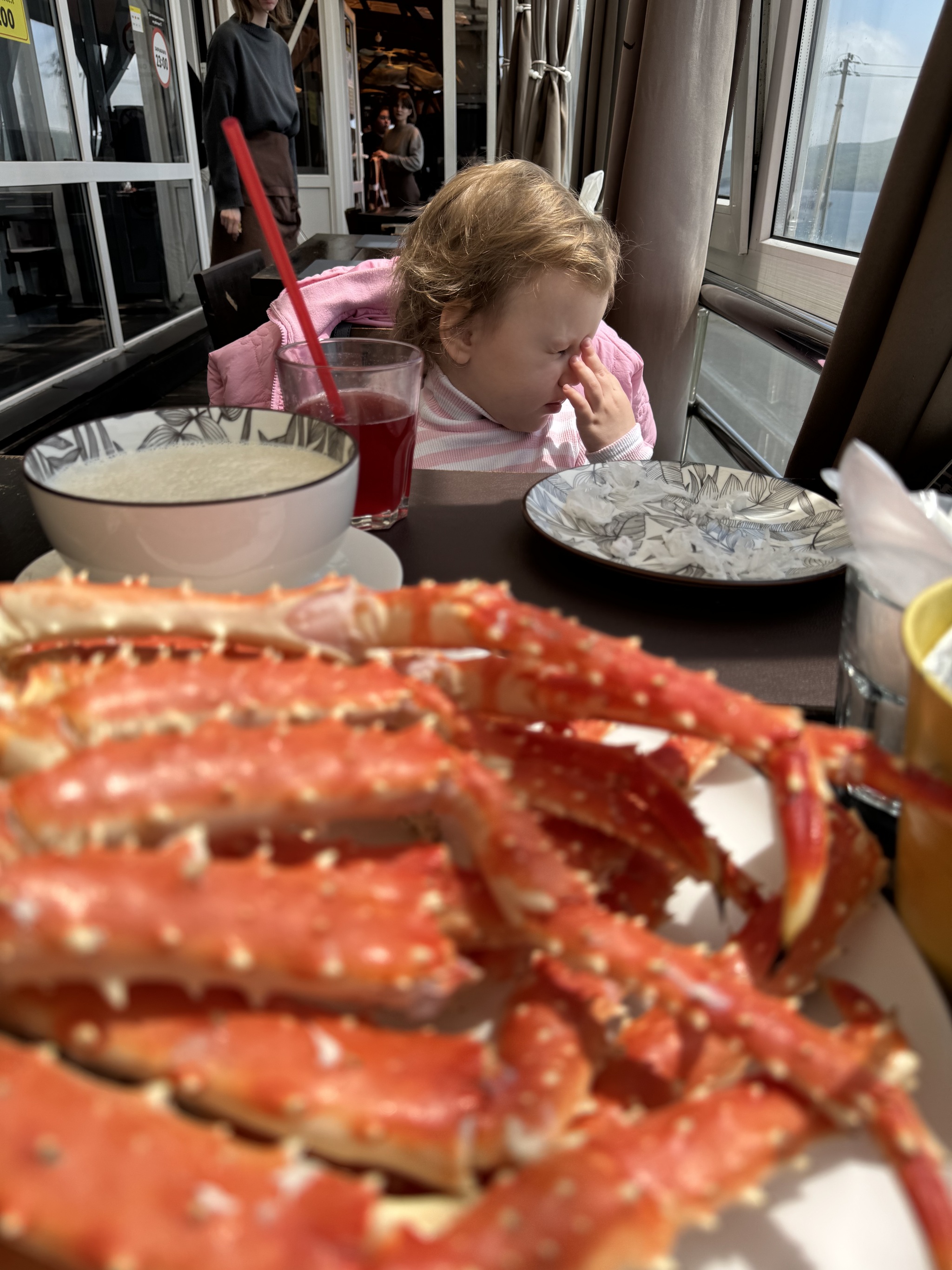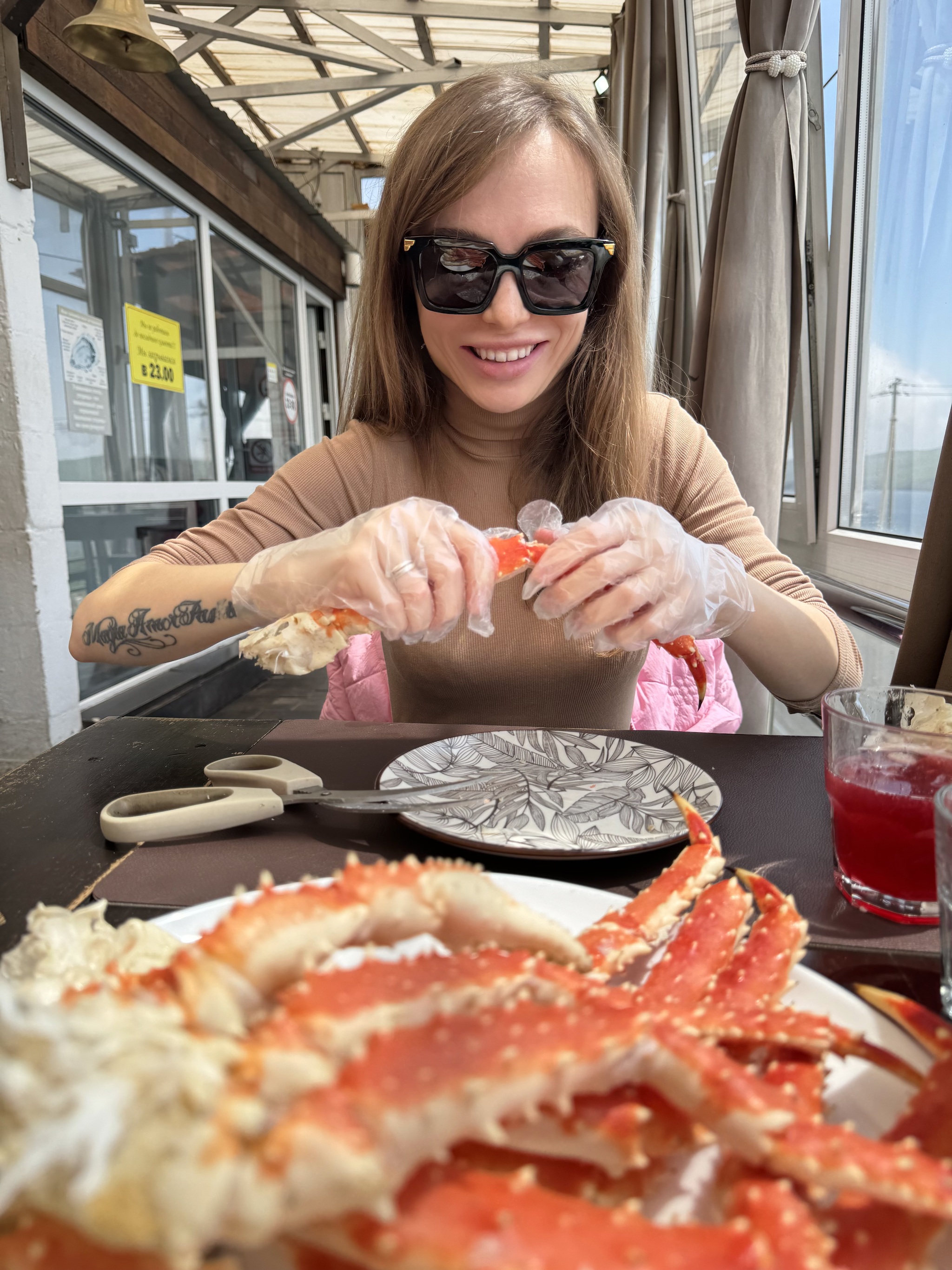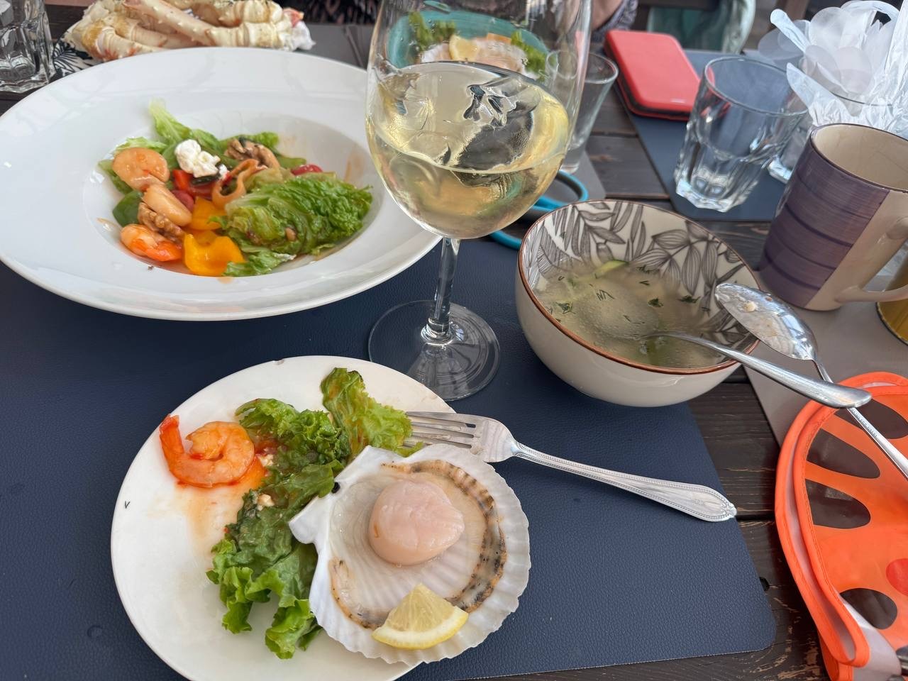 Там потрясающие крабы и всё, что с ними (из них—крабов)делают. Свежайшие гребешки, интересные салаты.