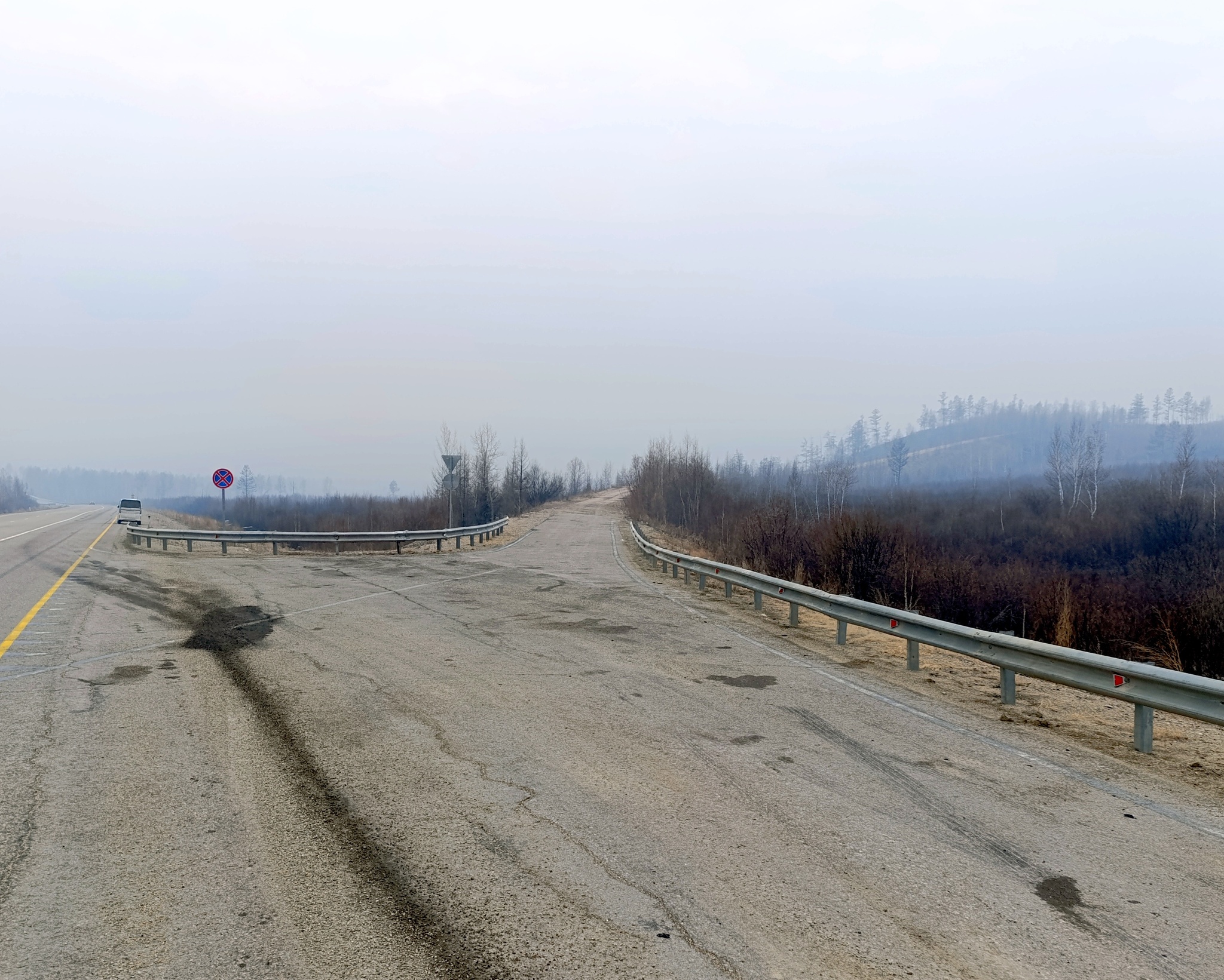 Один раз кончился бензин, ну почти… Я прочухал заправку. Ну как прочухал, я увидел её, но она была какая-то не очень по внешнему виду. Ещё настроения не было почему то, наверное есть хотел))) Я знал, что следующая километров через 100, в Чернышевске, но всё равно поехал. Бензина, к тому моменту, у меня оставалось километров на 30. Но у меня с собой, были две пятилитровые баклажки из-под воды, залитые бензином. Бензин всю дорогу лил обычный 95, не ультра ни супер, ни мега, а просто 95. Уже лет 15 так делаю, на всех своих машинах. В общем… чёрные горы (сгорело всё), «волны» на трассе (я писал про это раньше), мало машин, а у меня 0 км. Проехал ещё 7 км от того, как компьютер показал 0. Бензин в баке не кончился, но я остановился у специального подъёма, для принудительного торможения грузовиков. Я вживую, по-моему, таких не видел. Только в кино у америкосов. Ну или не обращал внимания раньше. Сходил посмотрел на это чудо инженерной мысли, пофотал, залил 5 литров из баклашки...