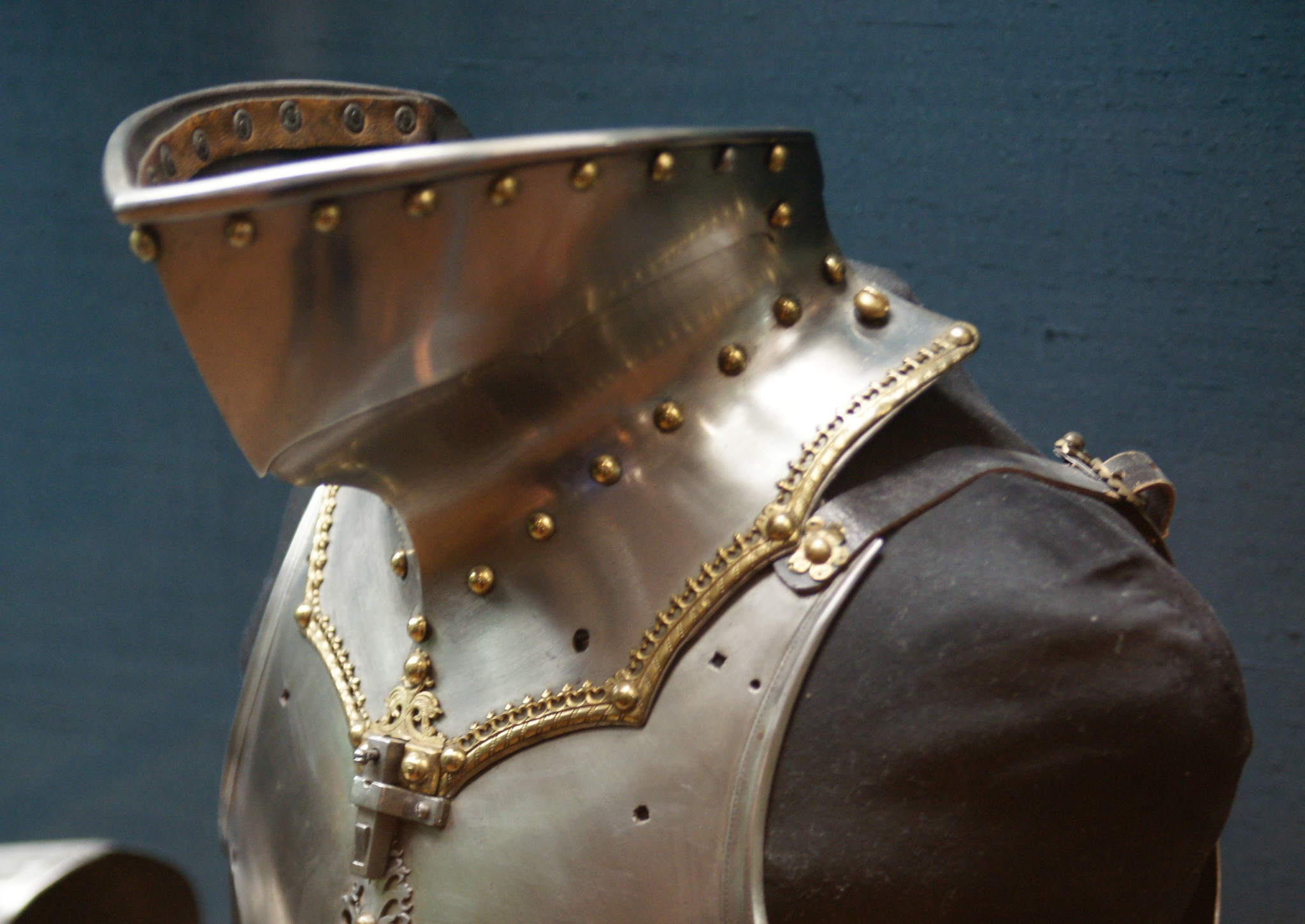 У Сарумановых детей, горжет ( некая деталь, которая должна защищать горло) составляет единое целое с кирасой ( вероятно также приклепана). Это не столь удобно, как изветсные нам варианты, но опять же можно простить подобные ошибки неопытным оружейникам Сталинграда.