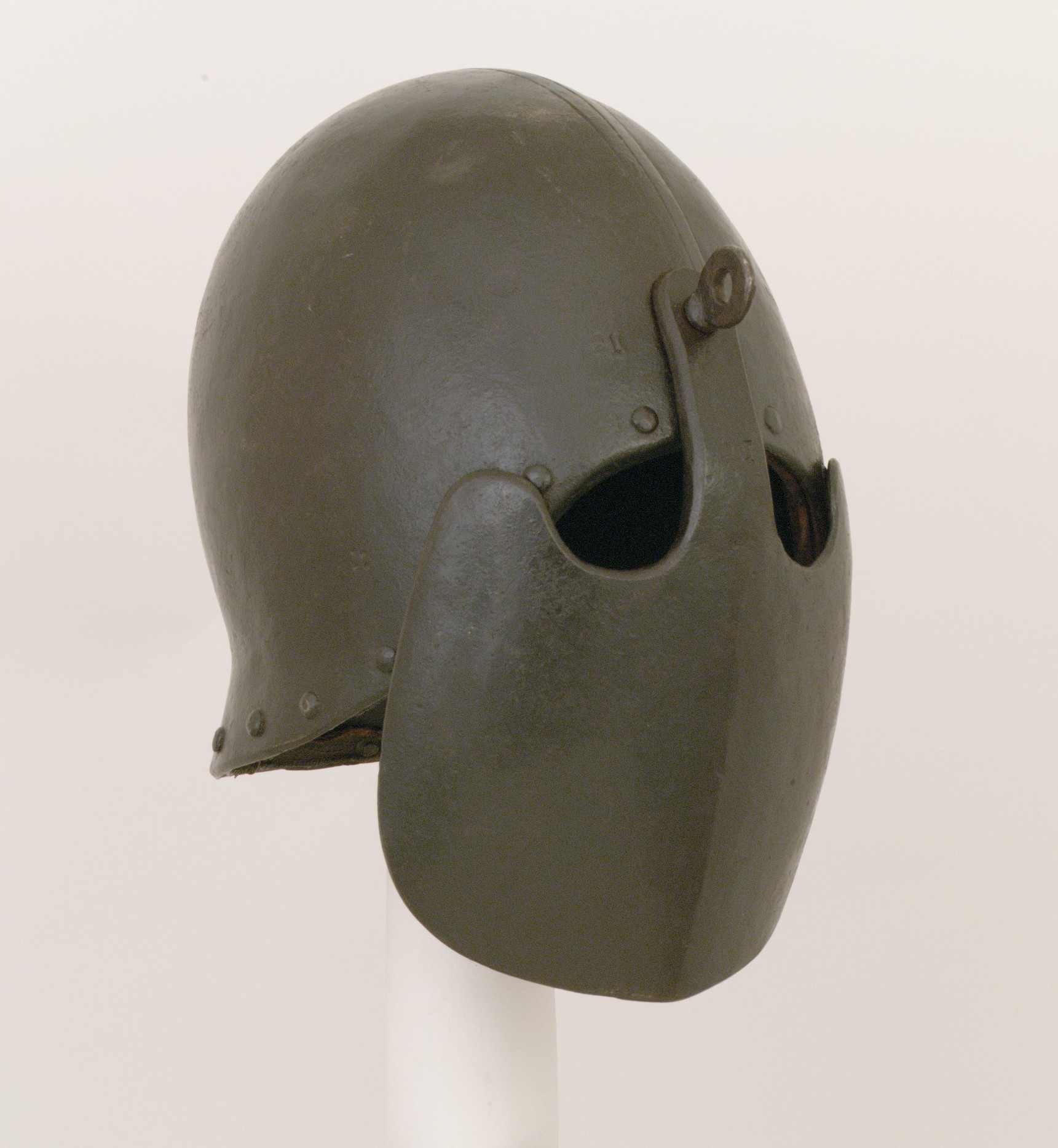 Все каски имеют основу из цельного куска металла, на который приклепываются дополнительные элементы. В нашей реальности тоже так делали и ничего особо плохого в этом нет. Пример на картинке ниже - очень типичный шлем кавалериста начала 17 го века. Металлическая шапка, на которую приклепываются нащечники, козырек и защита затылка. Быстро и сердито + крутой наносник на винте.
