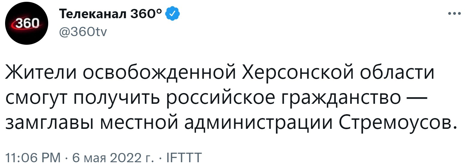 Российские военные в ходе спецоперации по демилитаризации Украины взяли под контроль всю Херсонскую область на юге страны и приазовскую часть Запорожской области. В регионах сформированы военно-гражданские администрации, началось вещание российских телеканалов и радио, идет восстановление торговых связей с Крымом.
