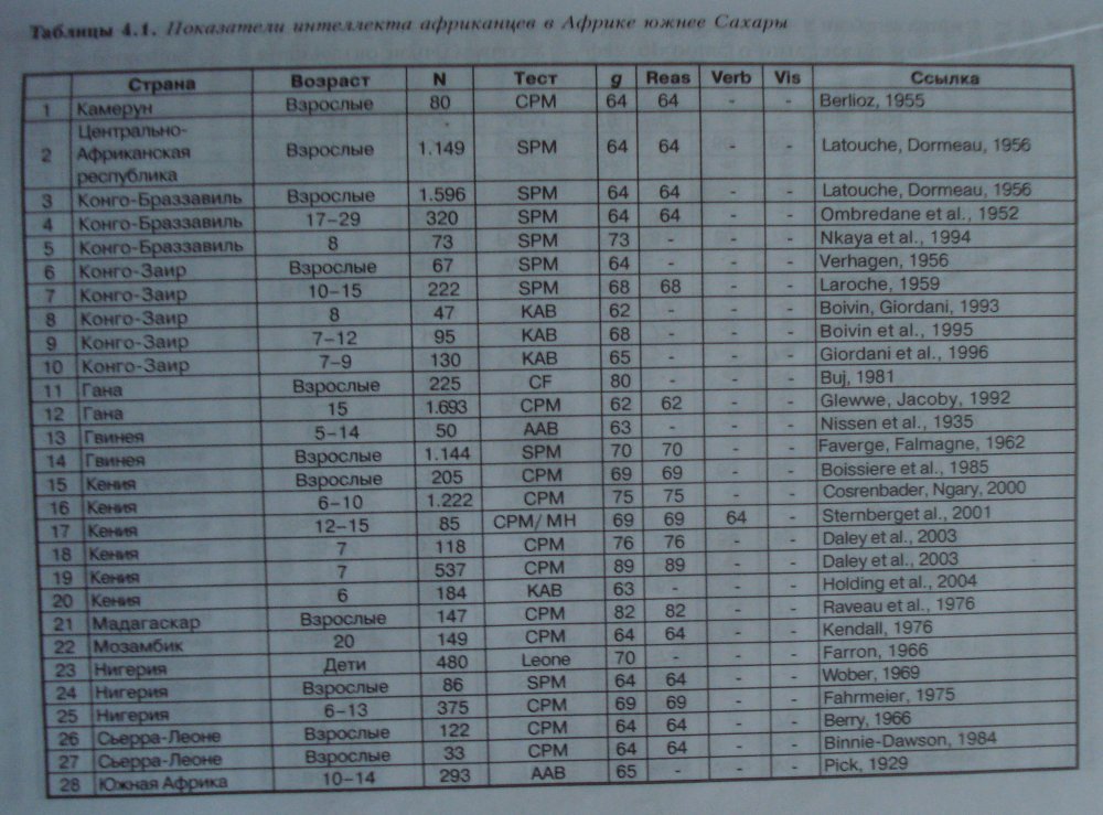 Всем любителям покритиковать Линна советую сперва почитать публикации критиков. В подлиннике. Ведь если это сделать, то можно узнать, что по их весьма либеральным оценкам, средний по Африке национальный IQ равен 81 баллу, а при удалении развитых стран из регрессии, коэффициент корреляции между ВВП и национальным IQ как был, так и остается равным 0,8, причем один балл IQ связан с ростом ВВП страны на 6%.
