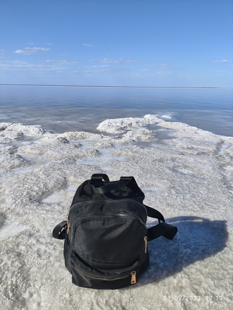 Белое, под соленой водой это кристаллы соли. темное это само озеро, которое резко начинается по полоске. Проблема одна- соль это колючая твердая штука. А вода ппц как выталкивает. И если поцарапаться соленая вода жжет. Короче все были раненые: у кого рука, у кого живот, спина, нога)) . Соль на вкус горькая, даже если не вы непланируете ее попробовать- вы попробуете. Я вот пока фоткала заляпала камеру телефона.На автомате облизнула палец, чтоб протереть.... Почуствовала себя очень тупой.