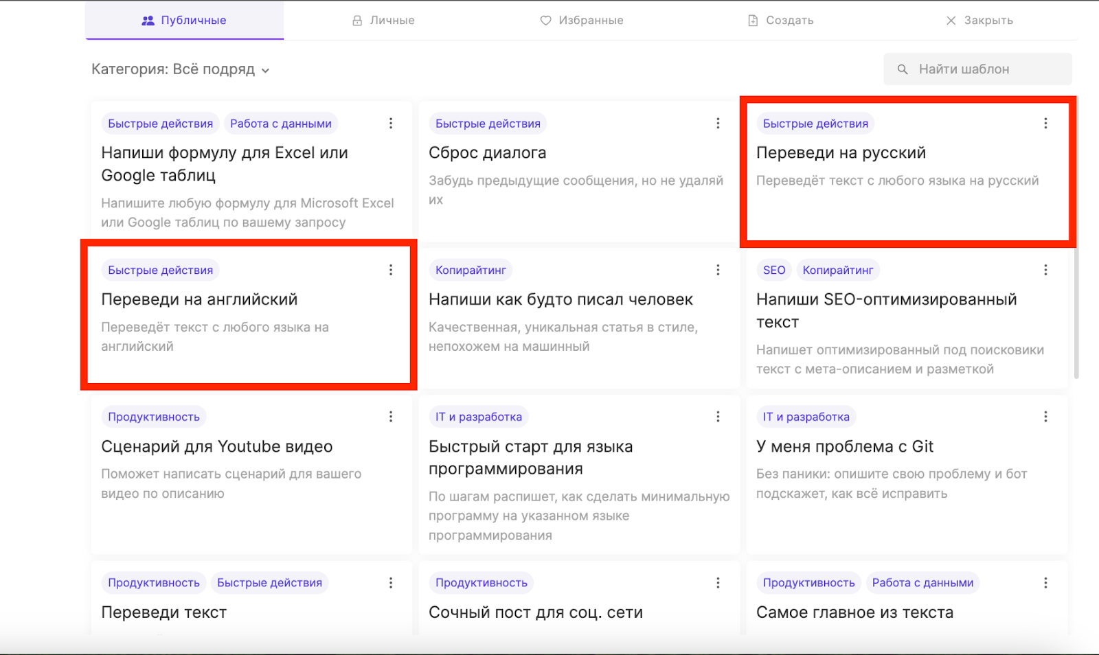 Попробуйте шаблон сервиса, чтобы нейросеть максимально понятно перевела вам любой текст с английского на русский или наоборот.