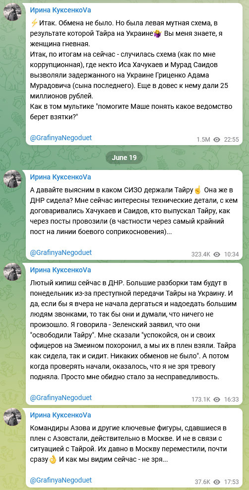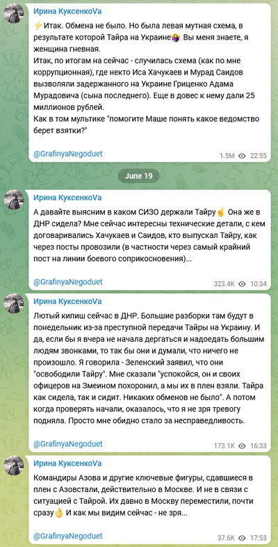 Пока инфополе форсит "очень важную новость" про Тайру, из ЛДНР пришла новость, которая собственно и объясняет, почем эта "инфобомба" [имхо вообще не инфобомба] взорвалась именно в этот момент.
