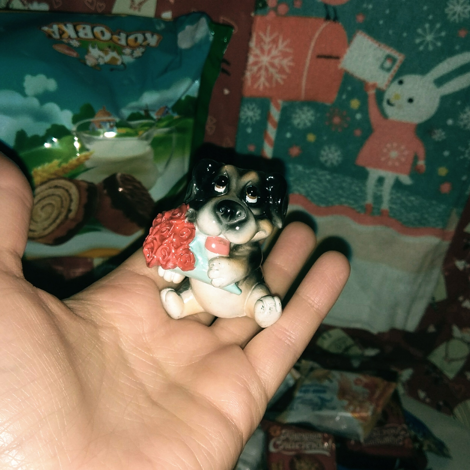 Мешочек с вкусняшками оказался то не простой! Алина спрятала в нём магнитик Волгограда (она студентка, учится там) и фигурку собачки (символ года)!