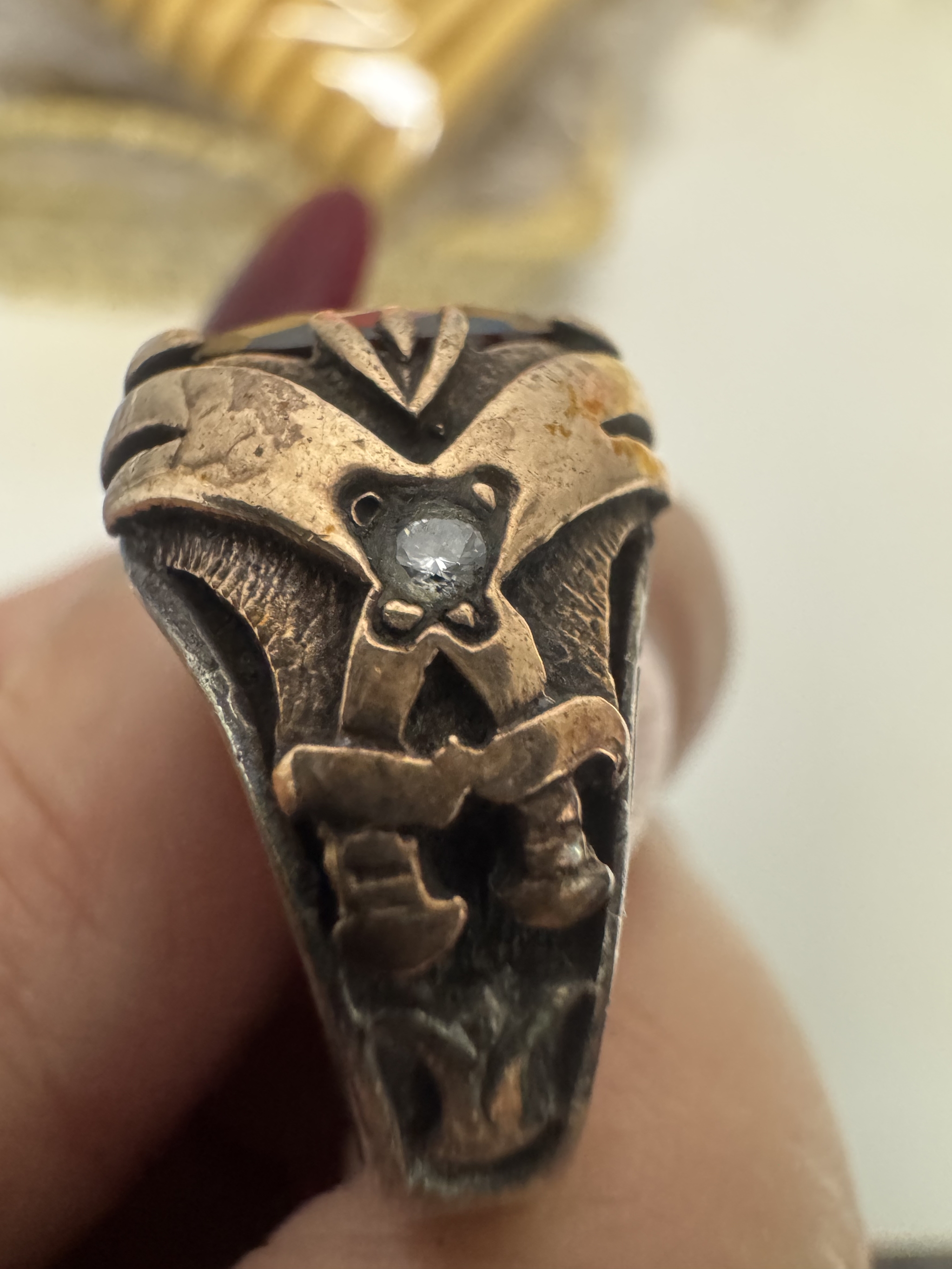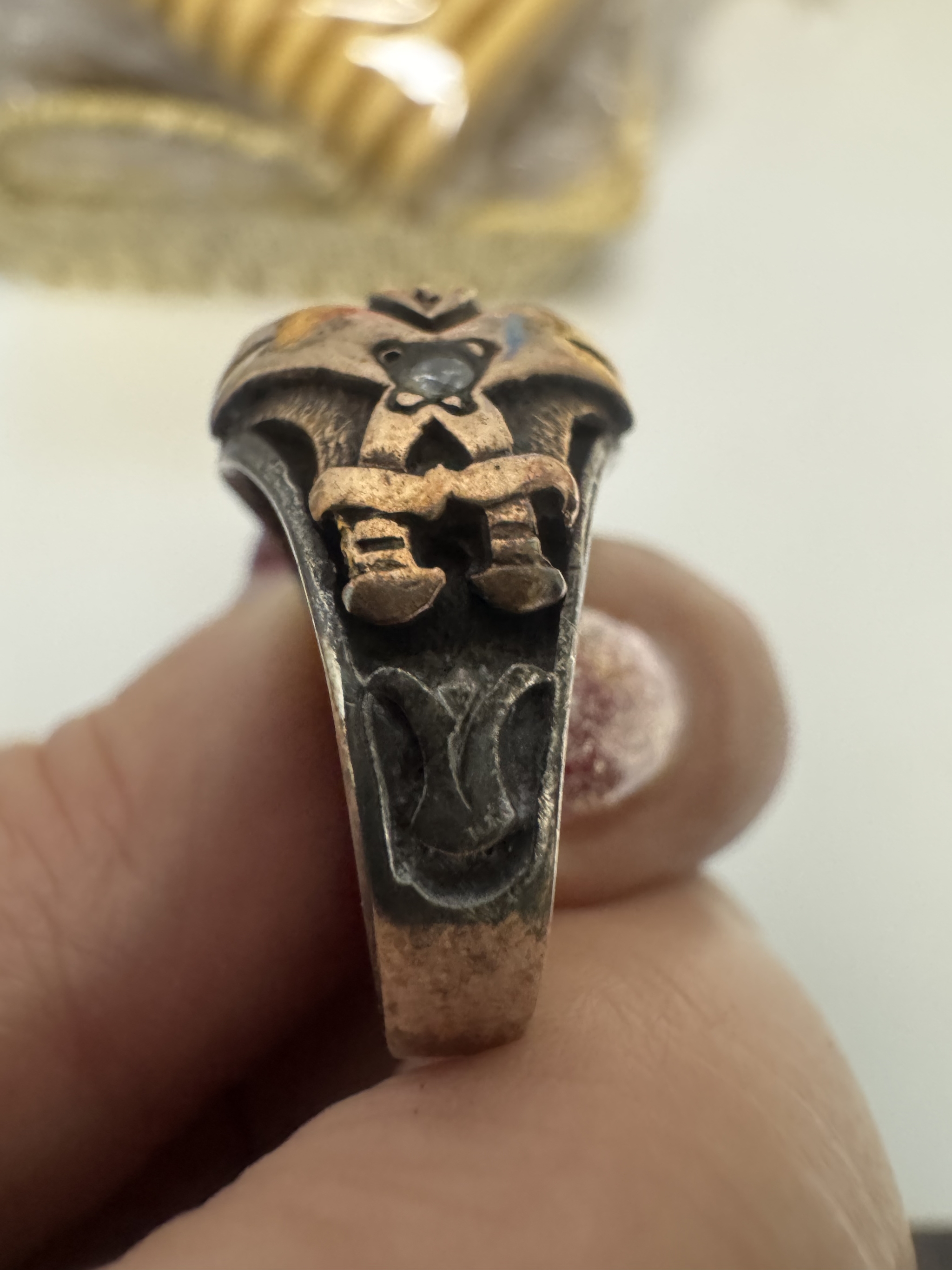 Всем здравствуйте)) . Я к вам с вопросом, помогите пожалуйста. Давным давно, на рынке я увидела кольцо, вполне себе бижутерно выглядевшее , но интересное. Знаете , такие самостийные лотки, где в одной куче пельменницы, старый утюг и резиновый пупс? Вот там оно и валялось . Было чумазенькое и дешевое , даже не знаю зачем я его купила. Много лет оно валялось по тумбочкам, а так как у меня сейчас много свободного времени, я его нашла и отчистила. Собственно вопрос- может кто то знает что это и где сделано? Понятно что дешевка с камушком, но выглядит необычно, может даже ручная работа. Я от природы любопытна , интересно было бы узнать