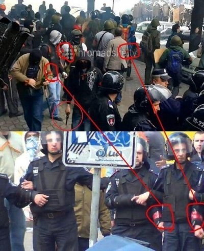 Пруф доказывает только то, что они в сговоре с милицией. А с этим никто и не спорит. Остальное - голословно. С тем же успехом милиция может быть в сговоре с пророссийскими активистами. Это даже более вероятно.