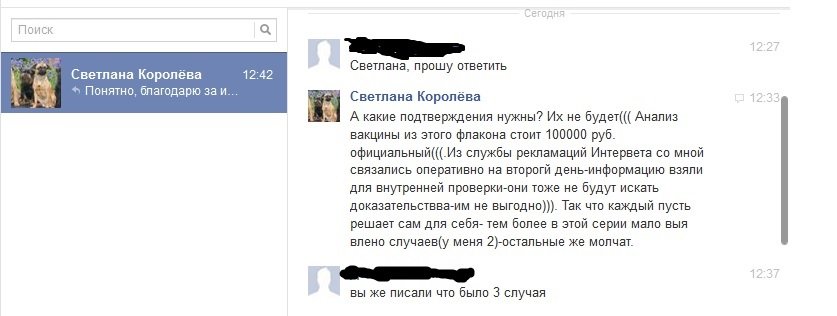 Прочитал. Там в комментах: "Светлана Королёва Я поэтому и написала-быть осторожным! У нас было 3 таких реакции-в одном случае собаку не успели спасти-хозяева доехали домой-обратно не успели( Всё равно в таком случае партия считается бракованной. С производителем работает наш сертифицирующий орган-Институт ВГНКи-ему флаконы из-под этих вакцин мы и сдаём.Я лично 8 раз вводила вакцину этой серии-реакций не было-НО больше рисковать не хочу. Всё сдали для проверки" Ещё раз убедился, что перепост - опасная штука.