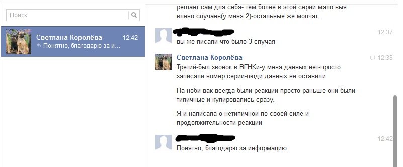 Кстати у меня возник сейчас этот же вопрос. К 4.40 утра глаза замылились окончательно. Сейчас списываюсь с владелицей собак. Вопрос по поводу серии открыт. Единственное что настораживает, что прививали в обоих случаях Нобиваком, но других серии. Короче омут все мутнее, будет новая информация, выложу сразу.