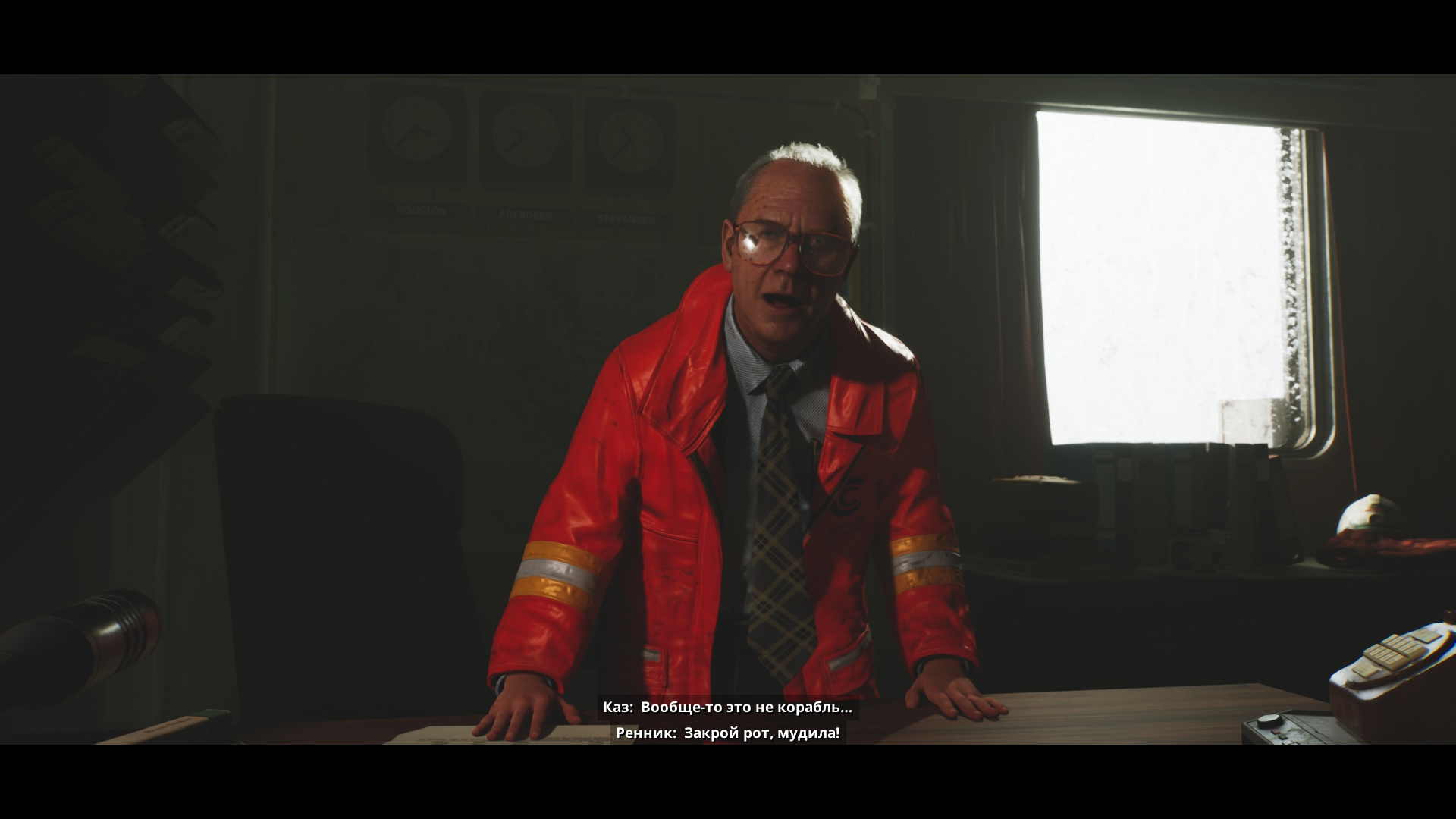 Во-вторых, мне не понравился сценарий. Игра выглядит как списанная («Только не точь-в-точь!») под копирку с «Нечто», но по атмосфере больше напоминает приквел 2011 года, а не оригинал. Диалоги примерно на пятьдесят процентов состоят из слов fuck и shit, и русские локализаторы знатно порезвились в переводе матерных оборотов, так что речь героев выглядит местами очень естественной – не сомневаюсь, что большинство людей так бы и материлось в подобной ситуации. Однако за этим украшательством стоит банальнейшая суть. Возьмём, например, начальника, мужика лет шестидесяти, который сразу заявлен как очень неприятный человек. В начале игры он говорит герою, что он на платформе «король», разведя руки жестом Тони Старка. Знаете, повидал я мудаков-начальников разных сортов, но не припомню, чтобы в припадке ярости хоть кто-то демонстрировал власть так инфантильно.