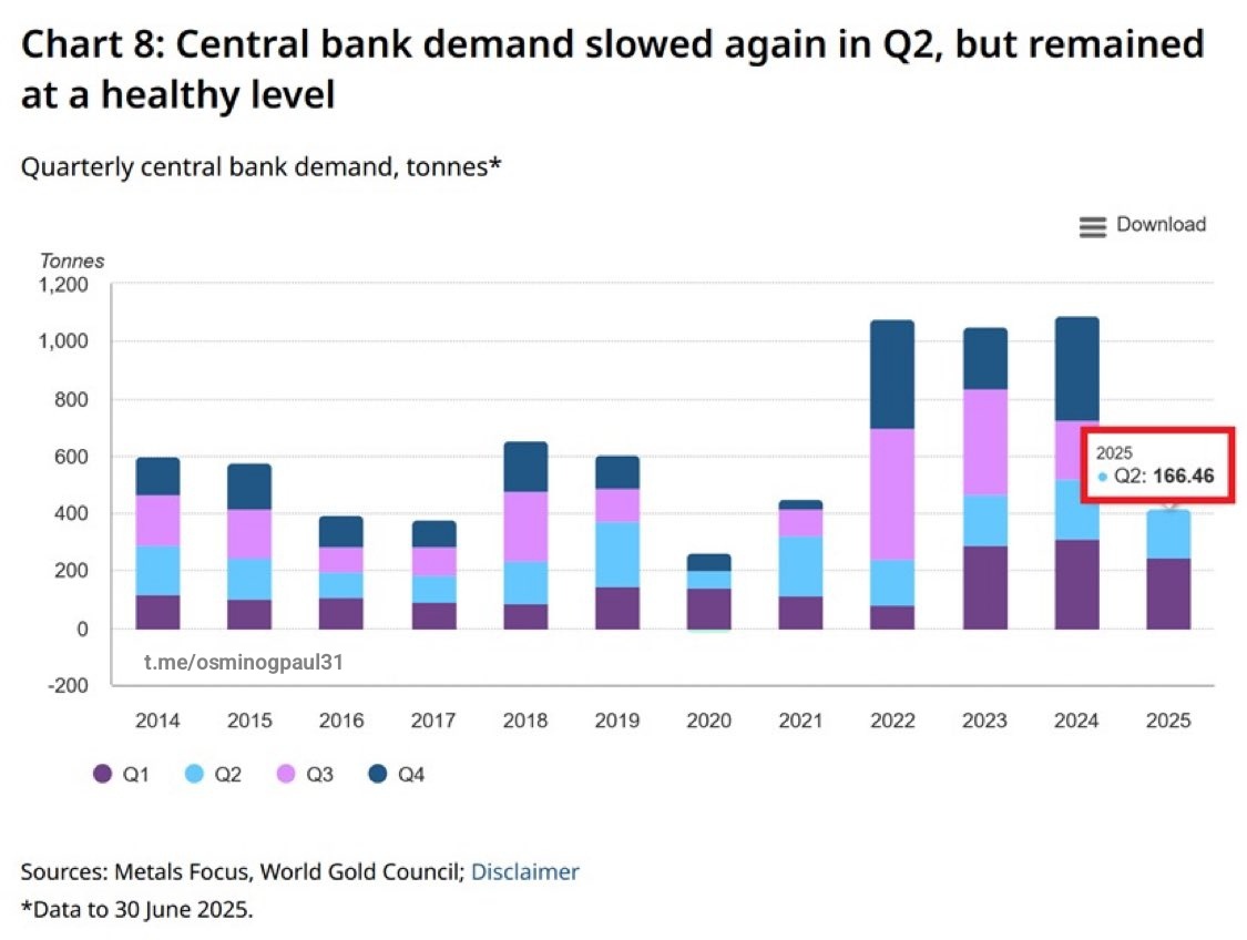 0 kinosmotr Экономика Во II квартале 2025 года центральные банки купили 166,5 тонны золота 6 месяцев назад Что на 41 % выше среднего показателя 2010-2021 годов. Канал Осьминог Пауль Золото Банк Картинка с текстом Экономика Драгметаллы Инвестиции Telegram (ссылка) Ещё 0