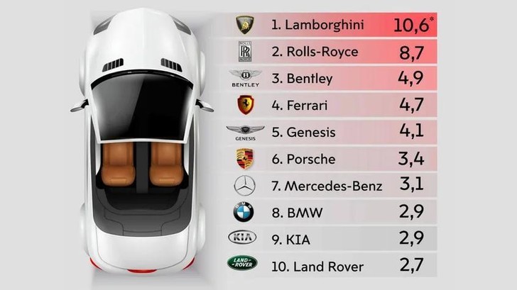 В первом квартале 2021-го на каждый зарегистрированный автомобиль этих элитных марок в среднем приходилось соответственно 10,6, 8,7 и 4,9 нарушений правил дорожного движения. Нормально так, да? Обрати внимание, весь топ-нарушителей состоит из премиальных и элитарных брендов, за досадным исключением Kia, автомобили которой заняли девятое место.