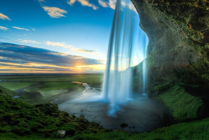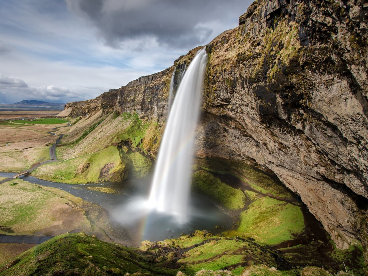 Водопад Сельяландсфосс (Seljalandsfoss) – излюбленный туристами водопад на юго-западе Исландии. Расположен на реке Сельяландсау (Seljalandsá), вокруг которой потрясающие луга и невероятной красоты пейзажи. Относительно других исландских водопадов, этот довольно высок, — вода свергается с 60 метров, обдавая всё вокруг потоком брызг и создавая множество радуг. В ширину он совсем скромный, намного меньше водопада Годафосс.