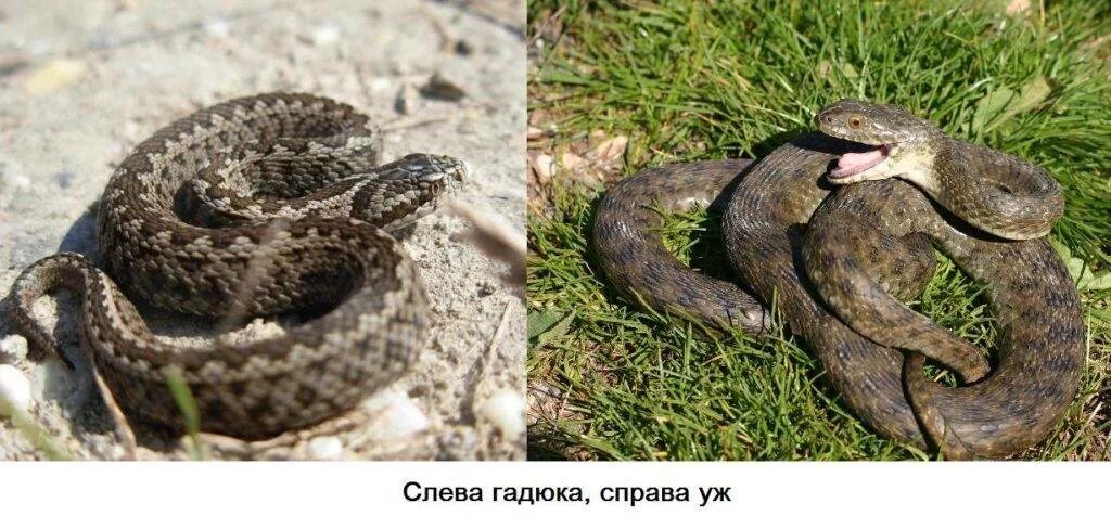 Отличается от гадюки узором на спине (у гадюк сплошной зигзаг, у ужа - шахматные клетки), более широкой головой и круглыми зрачками глаз (у гадюки вертикальные). Понимаю, что мало желающих вглядываться змеям в глаза, но знание не повредит.