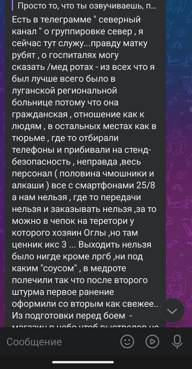 Условия в госпиталях ДНР/ЛНР отличаются от условий в госпиталях России. Основное отличие - за лентой внутри госпиталей охрана - или ВП или Ахмат и охрана по периметру.