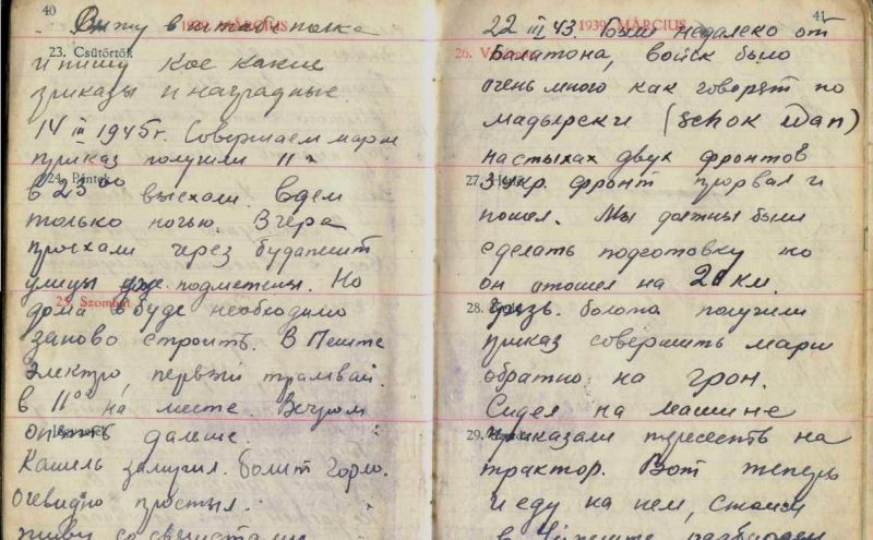 «Я родилась в 1949 году. О войне знала только из книг и учебников – папа никогда не показывал свой дневник, он вообще не любил вспоминать о военной жизни. Знаете, что поражает меня теперь, когда я листаю пожелтевшие страницы? Нет, не описание битв и сражений. Поражает то, что даже в такое суровое время отец не мог не замечать красоту окружающей его природы, размышлял о судьбах товарищей. А еще очень интересно, что дневнике нет записи, датированной 9 мая 1945 года. Предыдущая, от пятого числа, рассказывает о том, как дивизия вышла к Эльбе, как произошло воссоединение с союзниками. А вот дальше – почти молчание. Возможно, потому, что вопреки своим ожиданиям, отец остался служить. До середины 1946 года он находился в армии, продолжая командовать взводом и передавая свои навыки молодому поколению воинов».