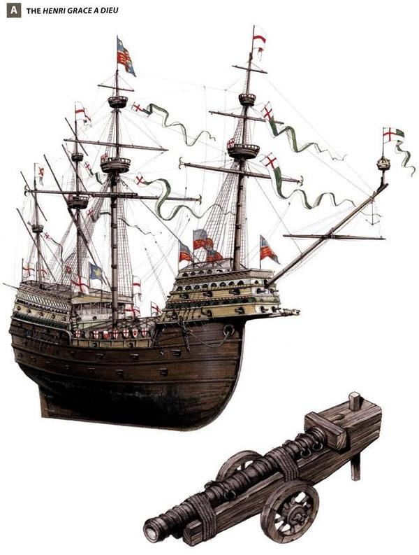 Как и другие технологические области, искусство кораблестроения и наука об оружии, в этот период времени подверглись основательным изменениям, и все увеличивающееся количество артиллерийских орудий устанавливаемых на кораблях, оказало сильное влияние на дизайн военно-морских судов. Немногие из правящих монархов того времени, знали о мощи военно-морской артиллерии столько же, сколько король Англии Генрих VIII (правил в 1509-47 гг.). В то время как его отец Генрих VII (правил в 1485-1509 гг.), просто поощрял размещение пушек на кораблях, юный Генрих приказал изначально проектировать королевские военные корабли, специально под установку тяжелых орудий. Этот процесс объединения артиллерии и военных кораблей воедино, и проектирование кораблей как пушечных платформ, достиг своего апогея во время правления его дочери Елизаветы I (правила в 1558-1603 гг.).